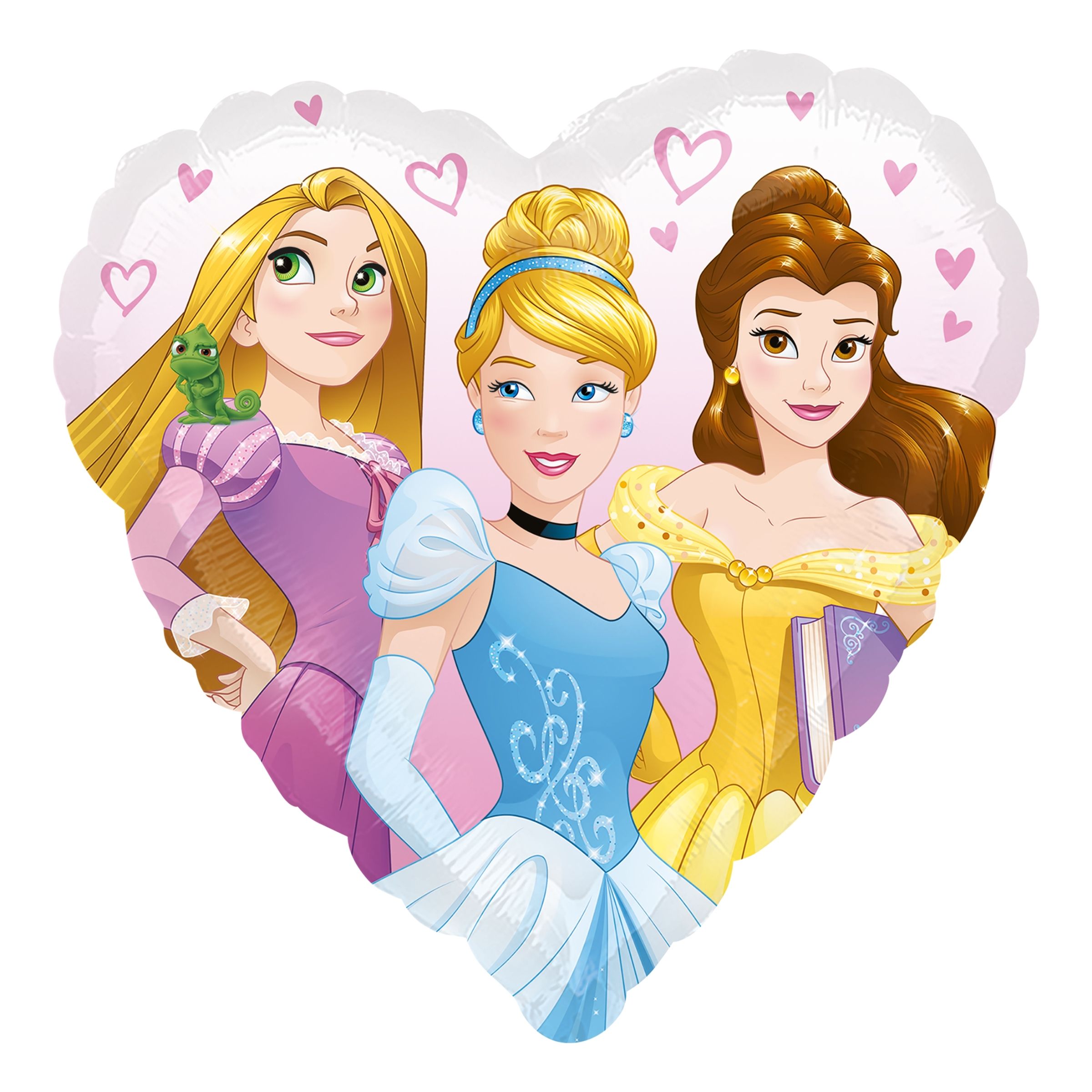 Folieballong Disneyprinsessor Hjärta är en hjärtformad ballong och har olika motiv av Disneyprinsessorna på fram- och baksidan. Ballongenrymmer ungefär lika mycket helium som 2 latexballonger á 25-30 cm.
