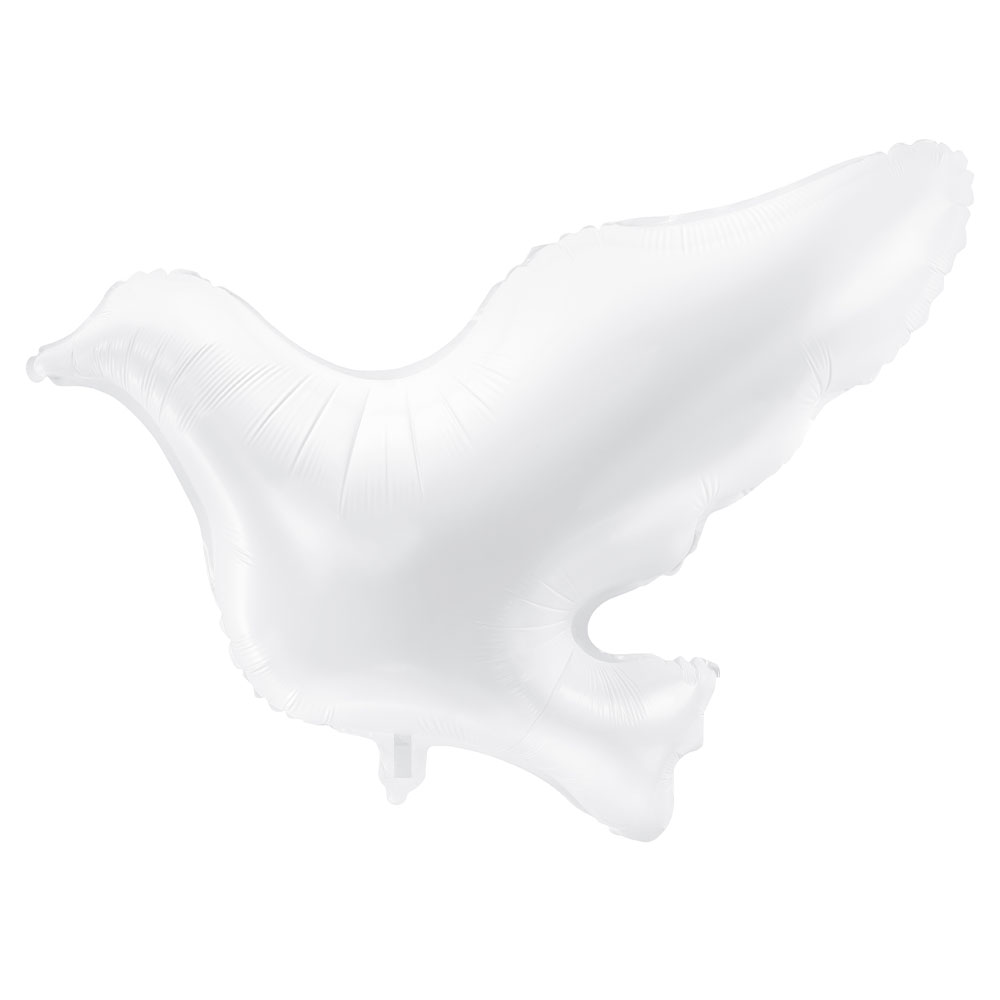 Folieballong Duva omfattar en vit folieballong i form av en duva som är ca 66 cm hög samt 77 cm bred. Blås upp folieballongen med luft eller helium.