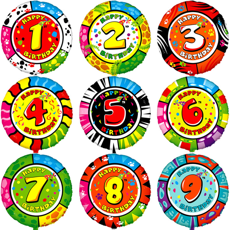 Folieballong Happy Birthday Djungelns Djur består av detaljrika och runda folieballonger med motiv av "Happy Birthday", en valfri siffra samt spår av ett djur tryckt framtill i färgsprakande design.