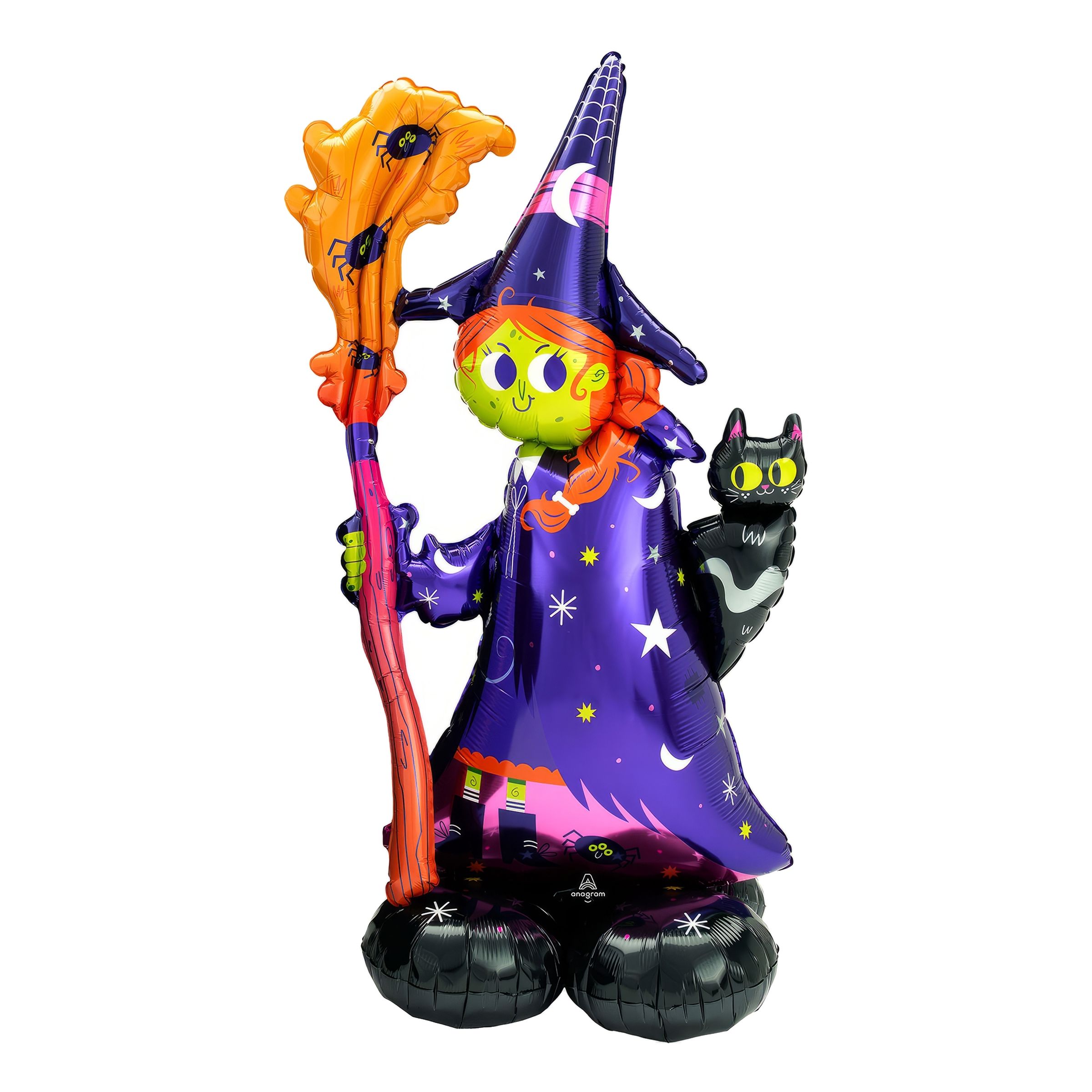 Folieballong Häxa AirLoonz är en stor uppblåsbar ballong i form av en glad och snäll häxa som är alldeles lagom läskig. Fyll endast ballongen med luft och inte med helium, då detta ej gör att den lyfter.