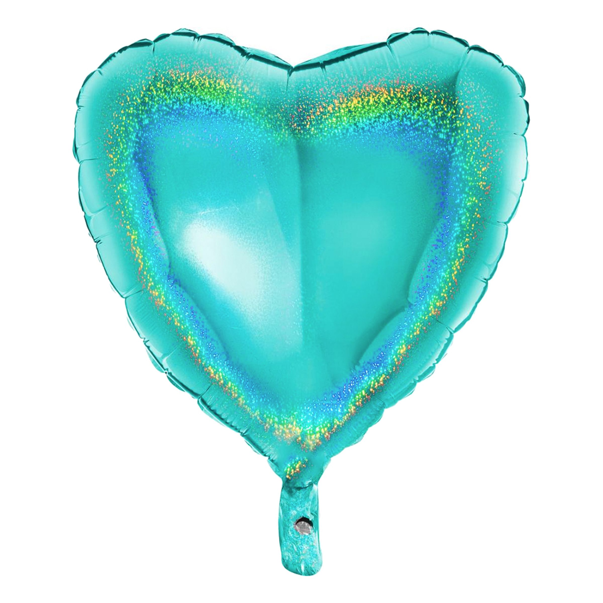 Folieballong Hjärta Glitter Turkos – 91 cm