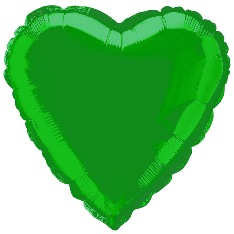 Folieballong Hjärta Grön omfattar en glansig folieballong i grönt formad som ett hjärta. Ballongen är ca 45 cm hög och fylls med helium eller luft och har självförslutande ventil.