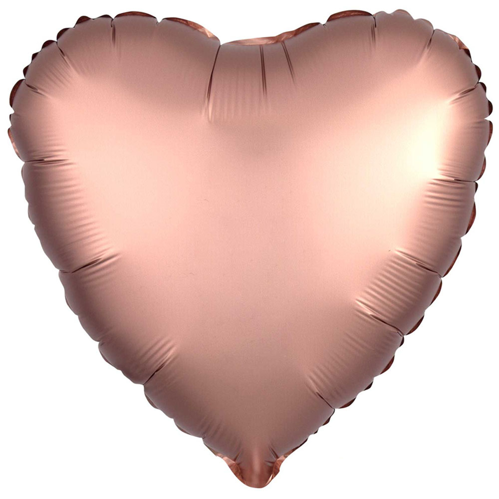 Folieballong Hjärta Roséguld Satinluxe är en hjärtformad folieballong i matt metallic roséguld. Ballongen blåses upp med helium eller luft.