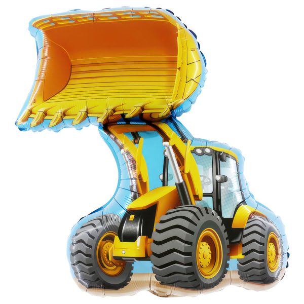 Förvandla barnkalaset till en byggarbetsplats med denna imponerande folieballong i form av en gul hjullastare. Perfekt som dekoration eller centerpiece bland ballonger på ett barnkalas där roliga kalastillbehör gör firandet komplett.
