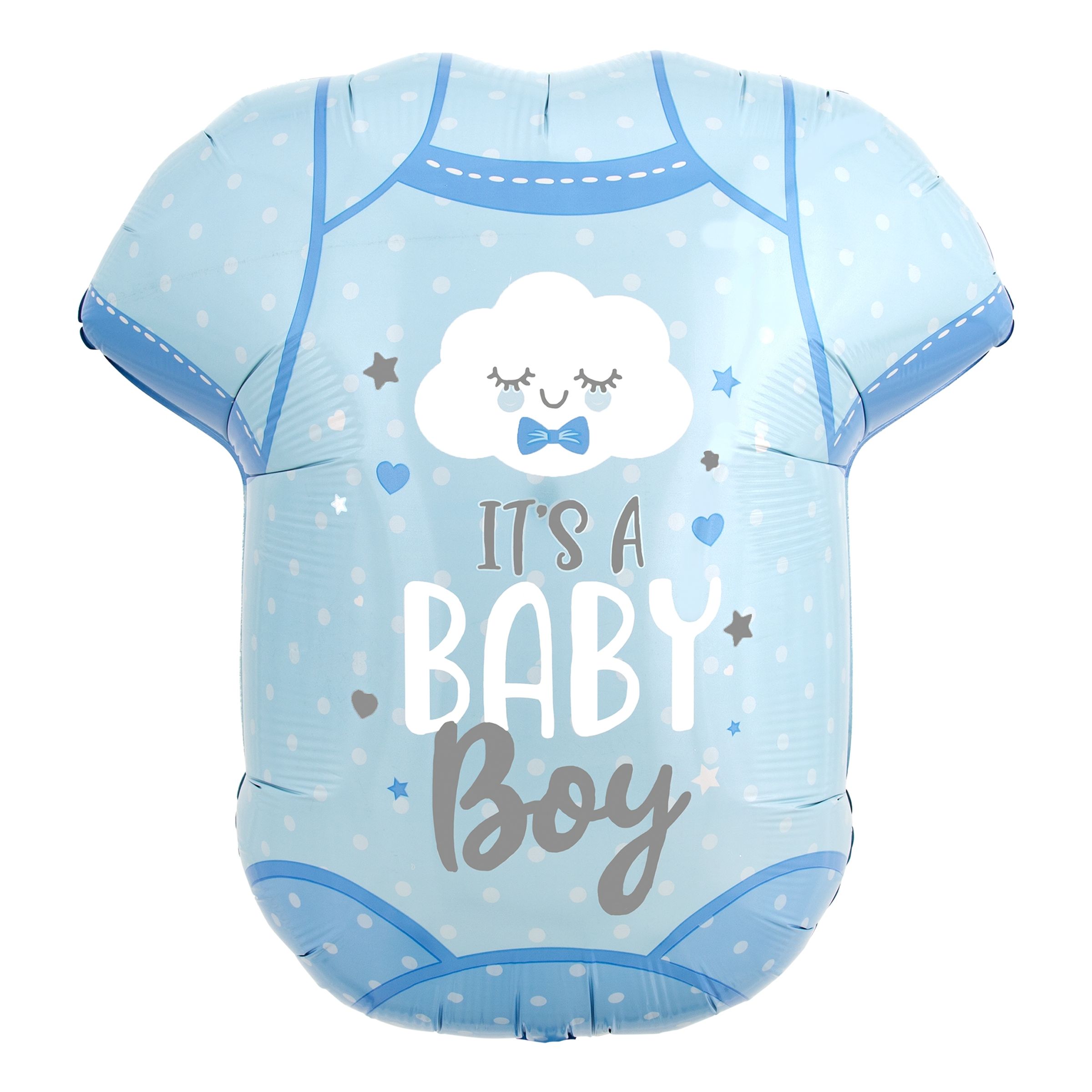 Folieballong Its a Baby Boy Body är en blå ballong av folie som kommer formad som en liten onsie för bebisar med texten "It's a baby boy". Komplettera gärna ballongen med ballongtyngd, ballongsnöre och helium, vilket du givetvis hittar hos oss.
