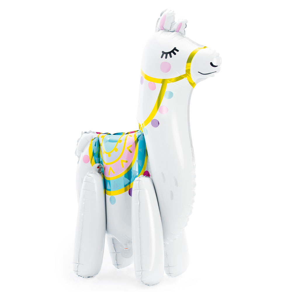 Folieballong Lama omfattar en vit lama folieballong i tre delar som fylls upp med luft och enkelt sätts ihop. Ballongen blir ca 39 cm bred och 61 cm hög uppblåst.