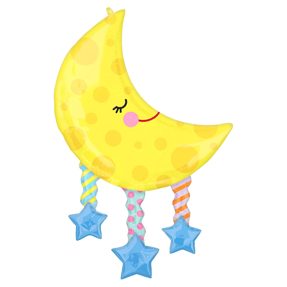 Ska du bjuda in till baby shower, dop eller 1-års kalas så blir denna fina ballong en superfin dekoration till firandet! Dekorativ folieballong som föreställer en glad måne med färgglada stjärnor som enkelt livar upp ditt bebisfirande. Ett perfekt pynt till firanden för de allra minsta!