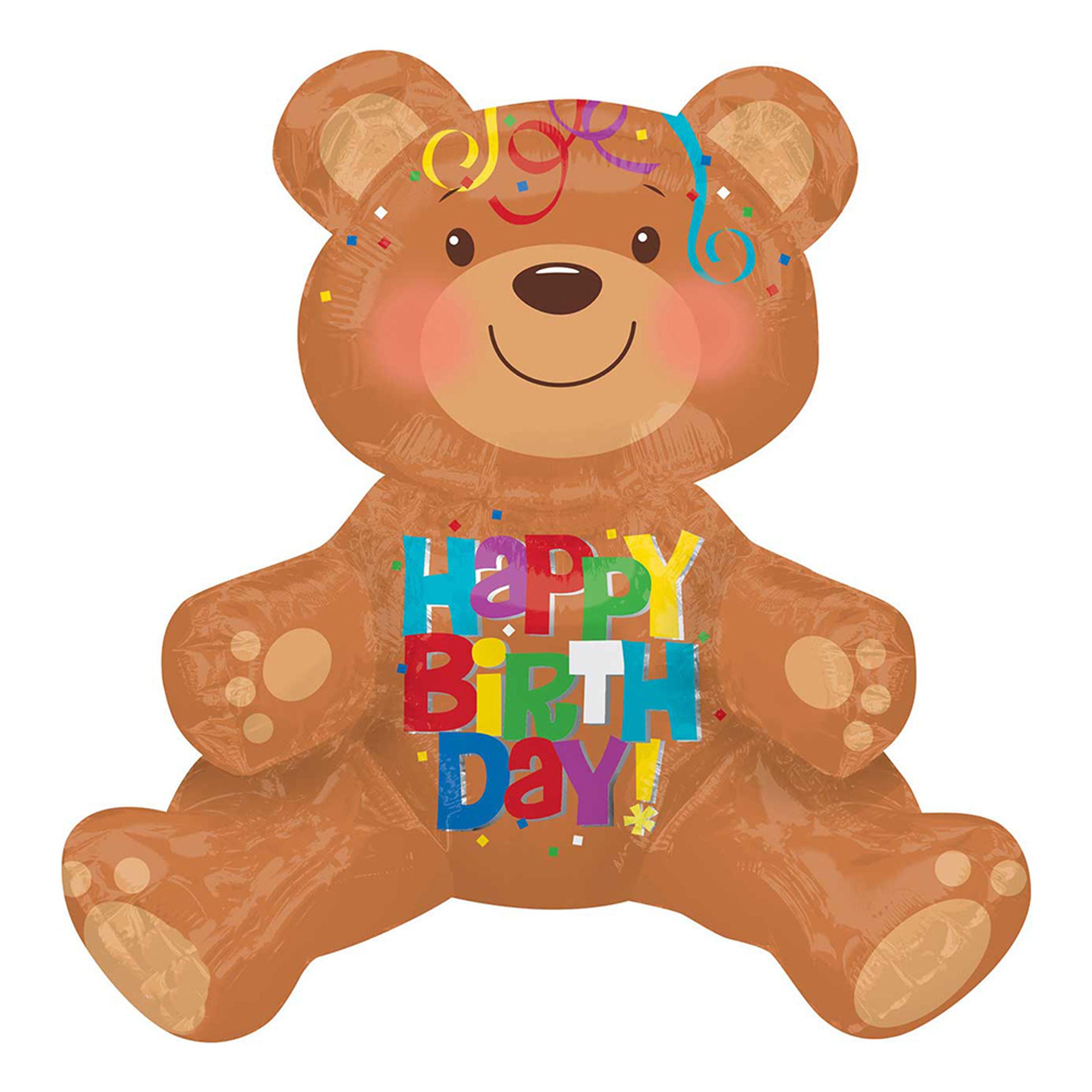 Ge bort den här söta ballongen till födelsedagsbarnet! Ballongen ser ut som en nalle och på nallens mage står det "Happy Birthday". Ballongen passar perfekt att dekorera med på ett födelsedagskalas!