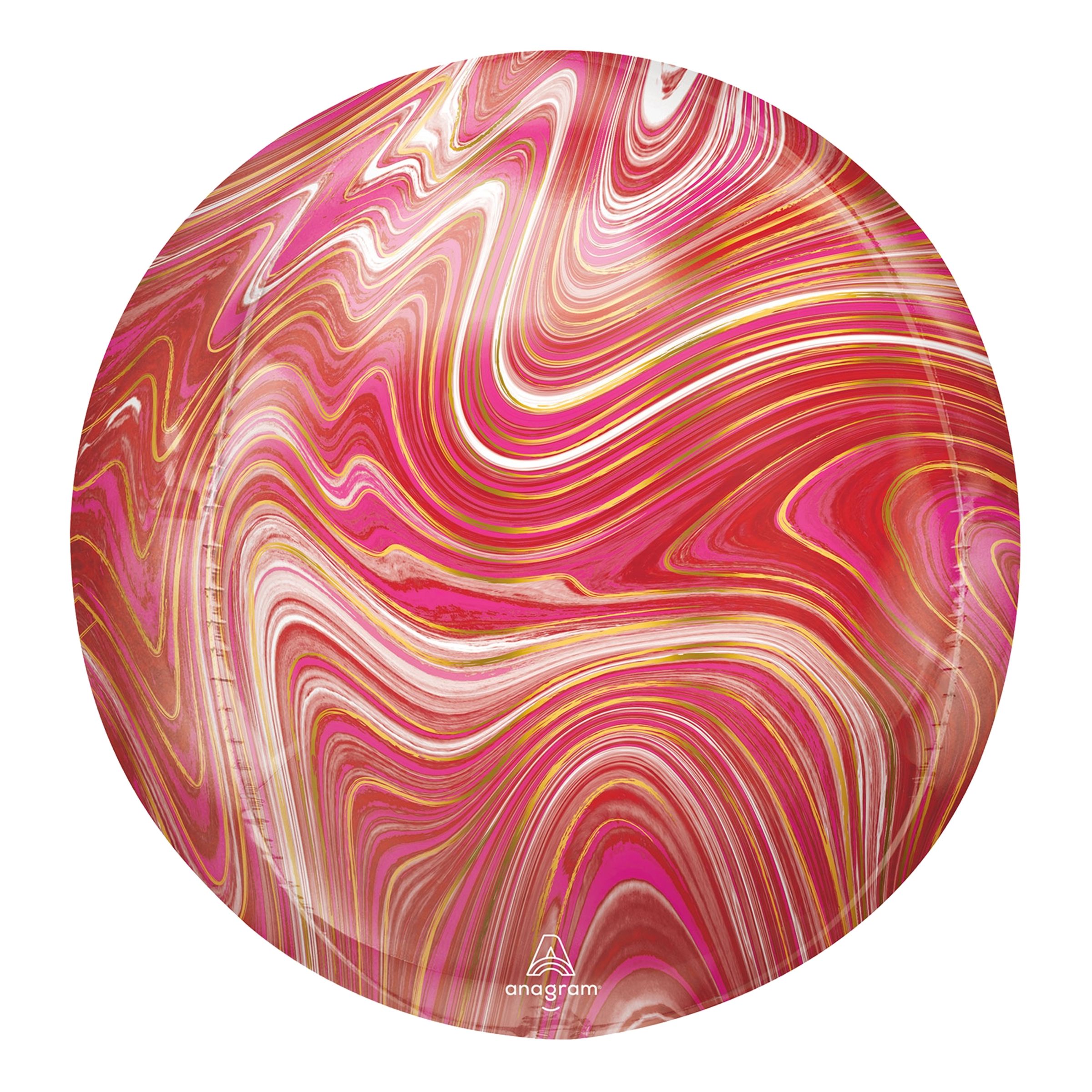 Folieballong Orbz Marmor Röd/Rosa är en klotrund ballong av folie som kommer med en häftigt marmor-liknande motiv i en blandning av rött och rosa. Komplettera gärna med ballongvikt, ballongsnöre och helium, vilket du givetvis hittar hos oss.