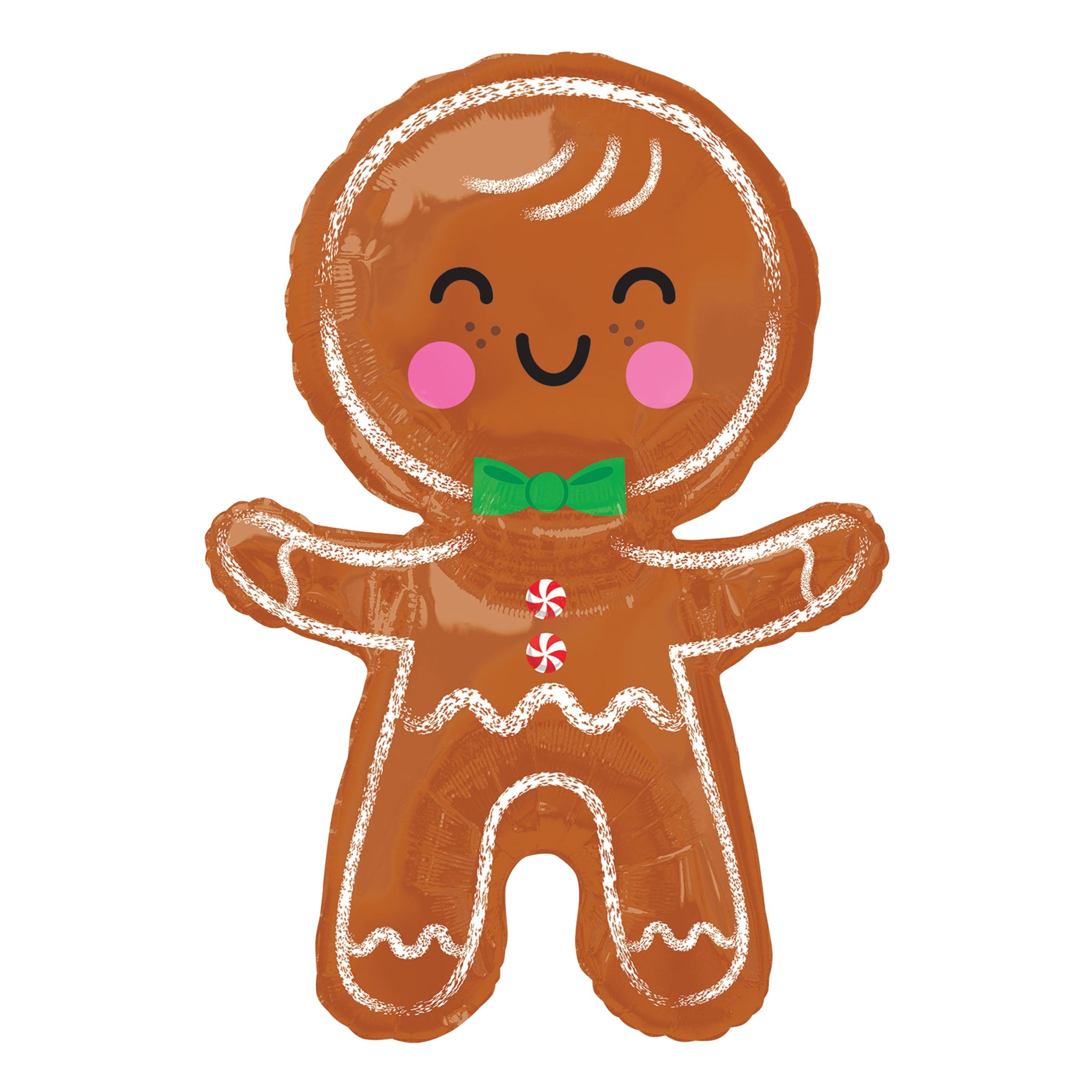 Folieballong Pepparkaksgubbe är det perfekta dekorationen, som barnen garanterad kommer älska! Ballongen är formad som en pepparkaksgubbe, med söta detaljer som polkagrisknappar, grön fluga och rosa kinder.