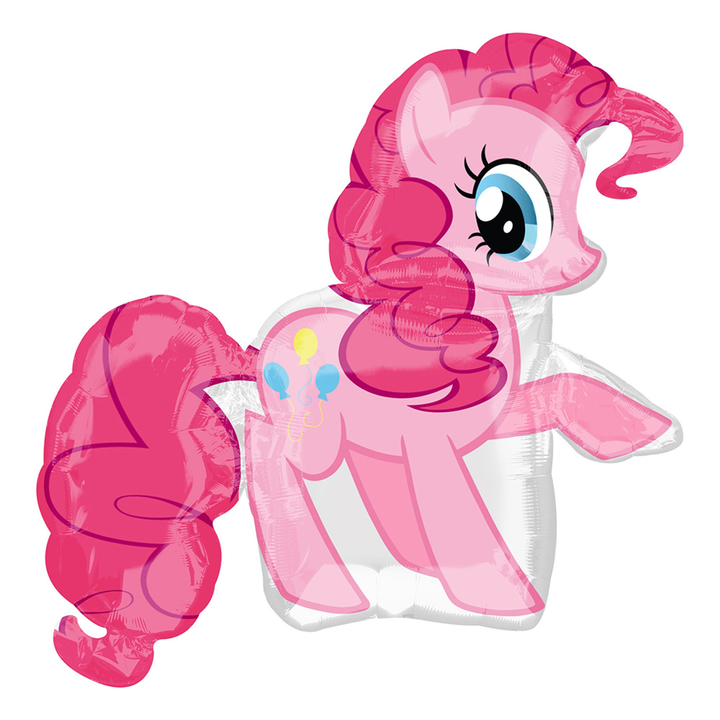 Folieballong Pinkie Pie är en folieballong formad som Pinkie Pie från My Little Pony. Den har en självförslutande ventil och mäter uppblåst ca 75 x 80 cm stor. Ballongen kan fyllas med luft eller helium. Flygtid med helium är upp till sju dagar. Den rymmer lika mycket helium som 4-5 latexballonger à 30 cm. Ballongen är en officiellt licensierad produkt.