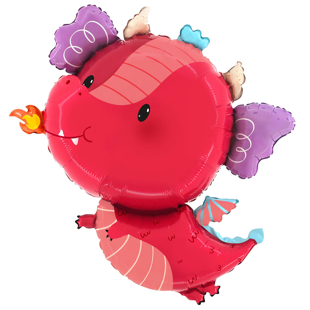 Lägg till en gnista på ditt djur-kalas med Folieballong Röd Drake. Denna glada drake med sina lila öron och utstickande eld är ett perfekt inslag för att höja stämningen och förvandla festen till ett drakoniskt äventyr.