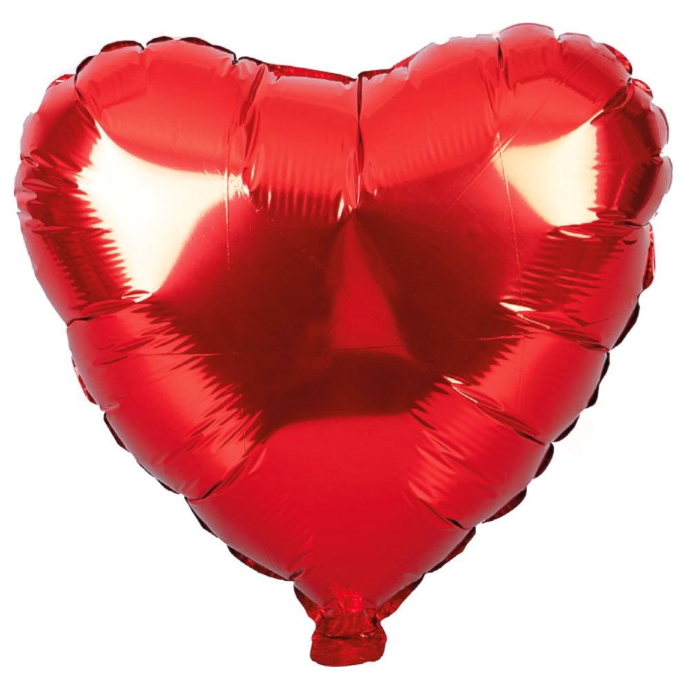 Folieballong Röd Hjärta består av en ballong i hjärtform. Hjärtat mäter ungefär 45 centimeter hög och är tillverkad av folie. Ballongen kan fyllas med helium eller luft och har självförslutande ventil. Blåsrör medföljer.