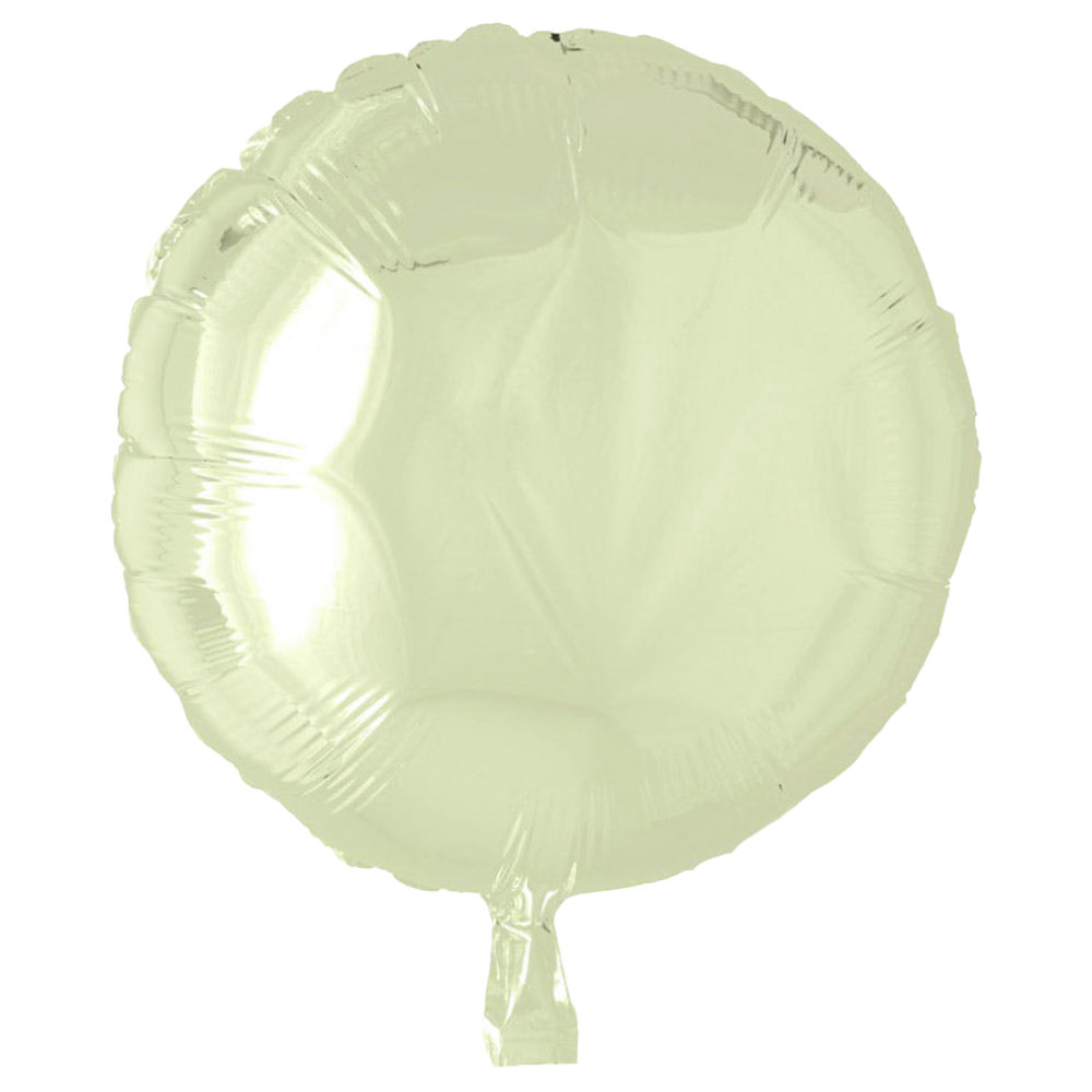 Folieballong Rund Pearl Ivory omfattar en folieballong i färgen ivory med pärlemorskimmer. Folieballongen mäter 45 cm i diameter uppblåst och kan fyllas med luft eller helium. Ballongen har en självförslutade ventil och svävar upp till en vecka med helium. Säljs styckvis.