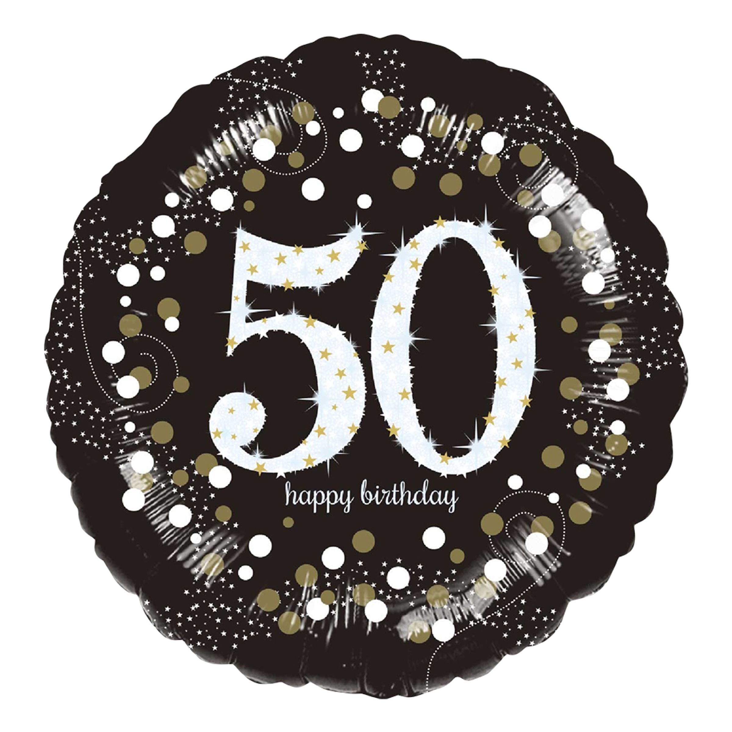 Folieballong Rund Sparkling Birthday 50 är en perfekt dekoration till ett födelsedagsfest! Ballongen är i färgen svart med guldiga och vita detaljer. På ballongen står siffran '' 50 '' samt texten '' Happy Birthday ''.