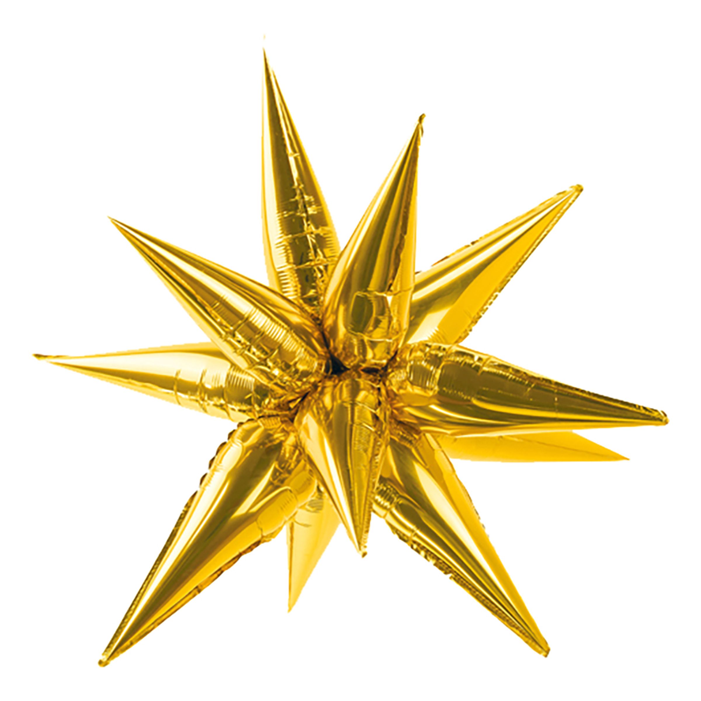 Vacker 3D-ballong med motiv av en guldfärgad stjärna du kan hänga upp till jul, på barnkalaset eller i fönstret till vardags. Fylls med såväl luft som helium. Välj mellan två olika storlekar.