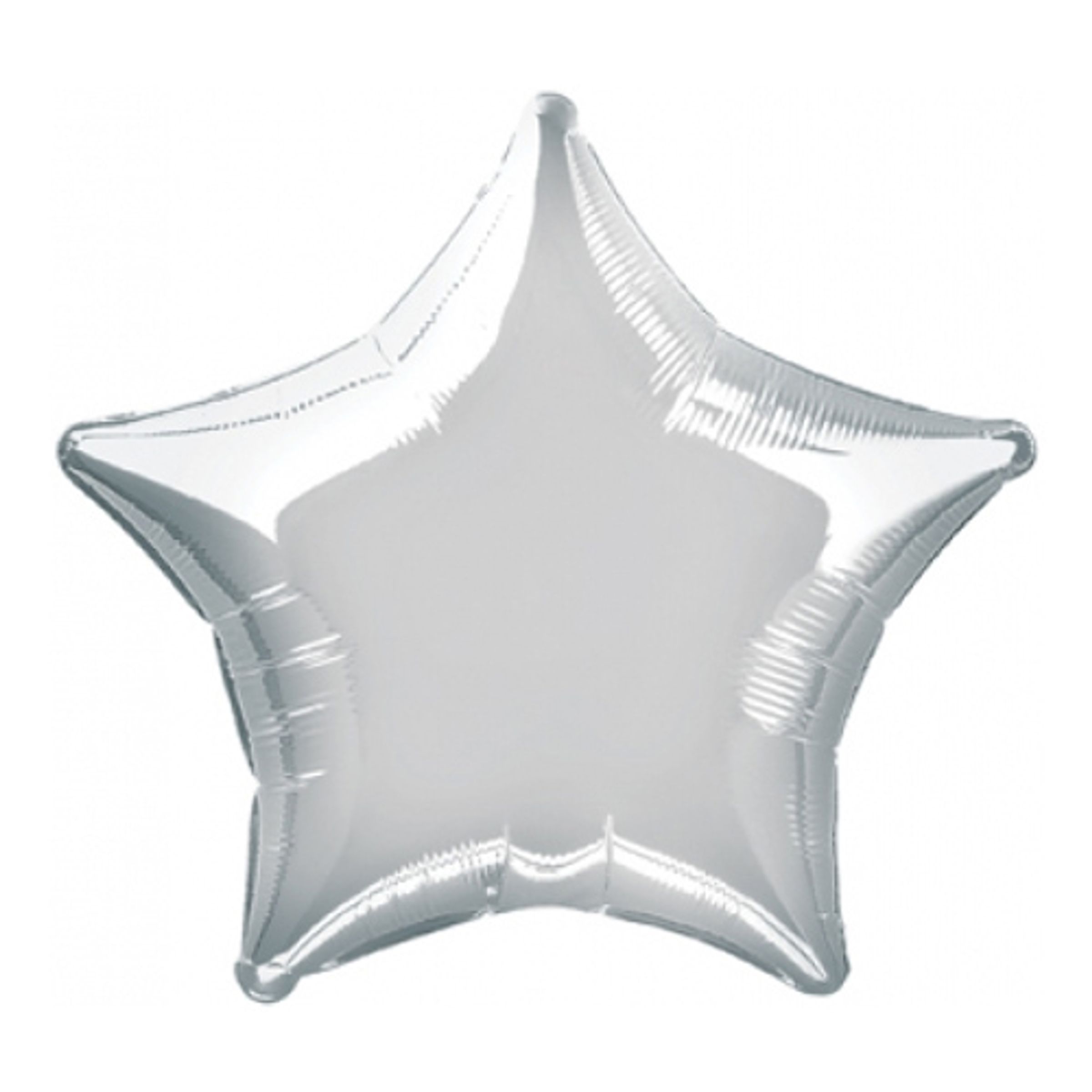 Silverfärgad stjärnballong. Perfekt dekoration till stjärnfesten eller andra arrangemang med silvertema. Ballongen är självförslutande och är ca 48 cm stor när den är uppblåst.