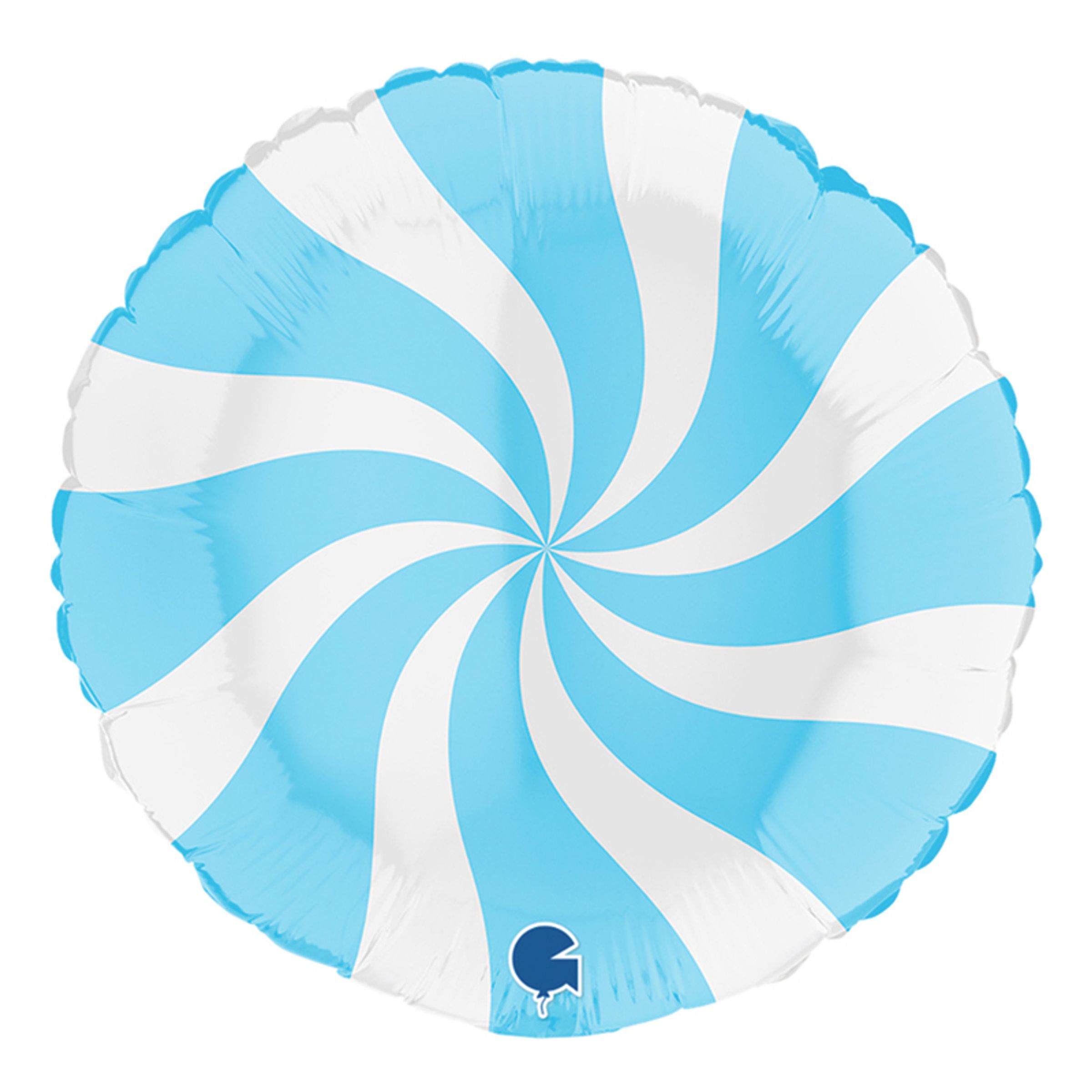 Folieballong Swirly Vit/Matblå är 45cm, rund och dekorerad med vita och ljusblå swirls. En fin ballong som passar både barnkalaset och festen.