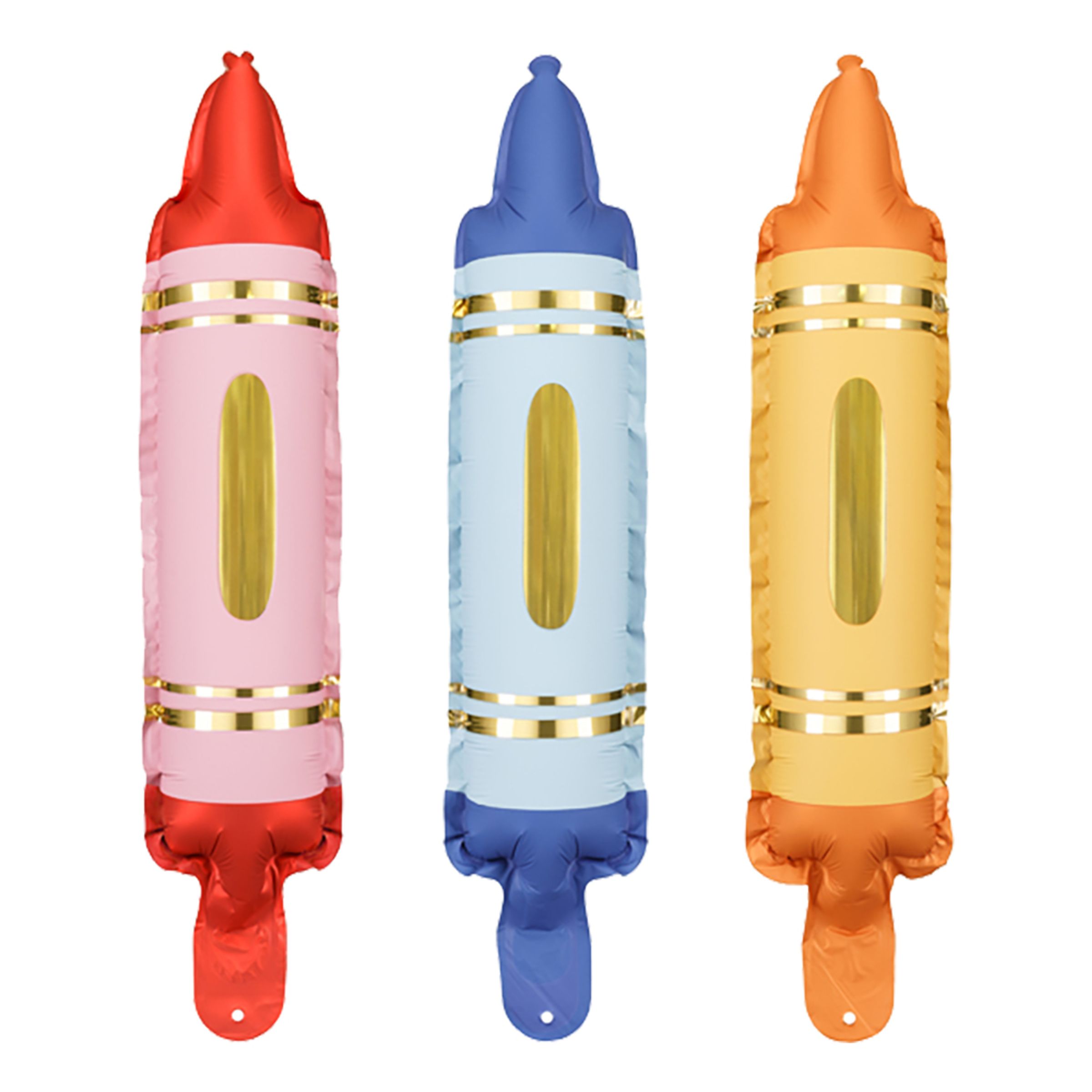 Folieballonger Kritor inkluderar tre stycken miniballonger som kommer formade som kritor i olika färger. Med i paketet medföljer även ett rör som används för att blåsa upp ballongerna med luft (ballongerna flyger ej med helium).