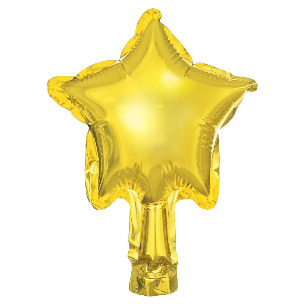Folieballonger Stjärna Guld Små 25-pack omfattar 25 stycken små stjärnformade folieballonger i guldfärg. Ballongerna fylls med luft, har självförslutande ventil och blir ca 10 cm stora.