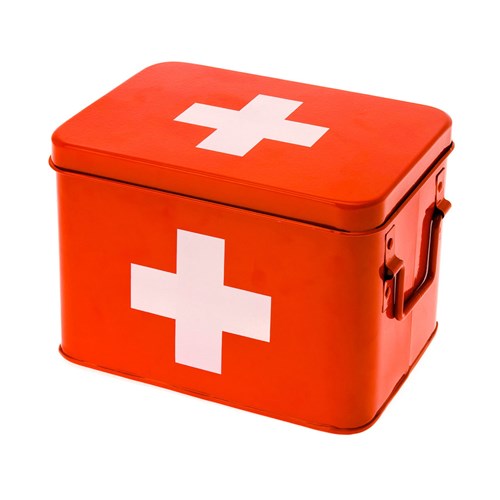 Klassisk förvaringslåda i plåt för hemapoteket!