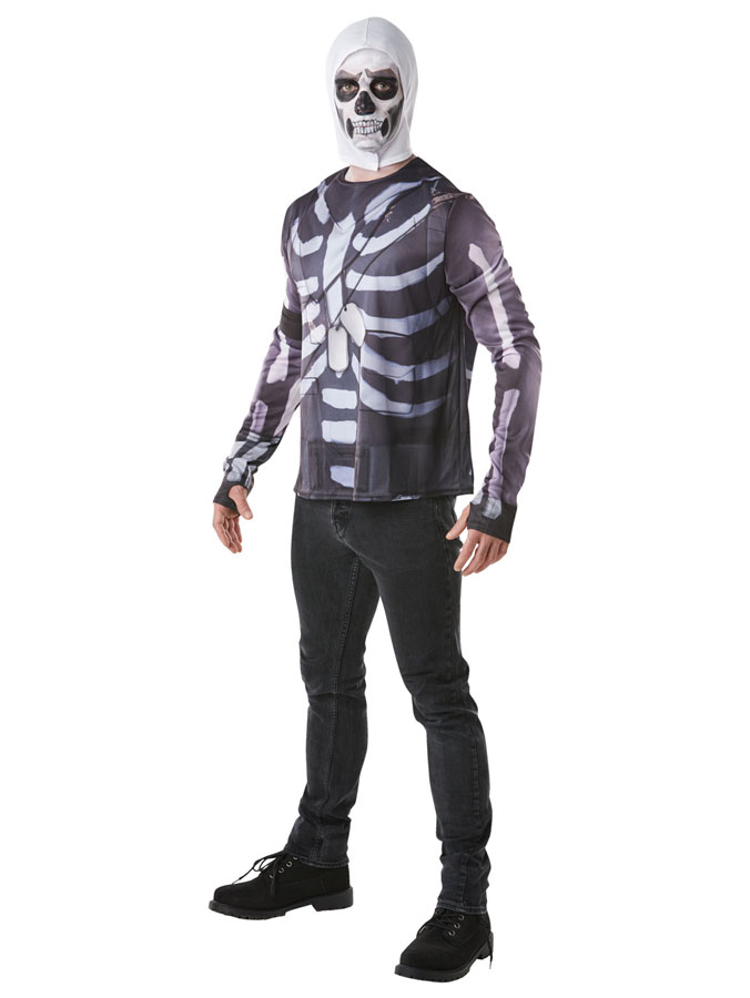 Gå på fest som den omtyckta karaktären Skull Trooper från det uppskattade spelet Fortnite! Denna Fortnite dräkt med häftiga tröja, armband och cool huva passar helt perfekt för dig som vill bli Skull Trooper för en dag. Komplettera gärna maskeraddräkten med en häftiga Skull Trooper sminkning för en svårslagen Fortnite utklädnad.