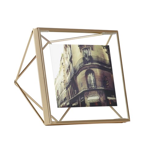 Den geometriska fotoramen Prisma är en blickfångare oavsett om den sitter upphängd på väggen eller stående på en yta. De dubbla glasskivorna håller bilden på plats och ger den en svävande look. Perfekt när du dessutom vill att den snygga ramen bakom ska synas!