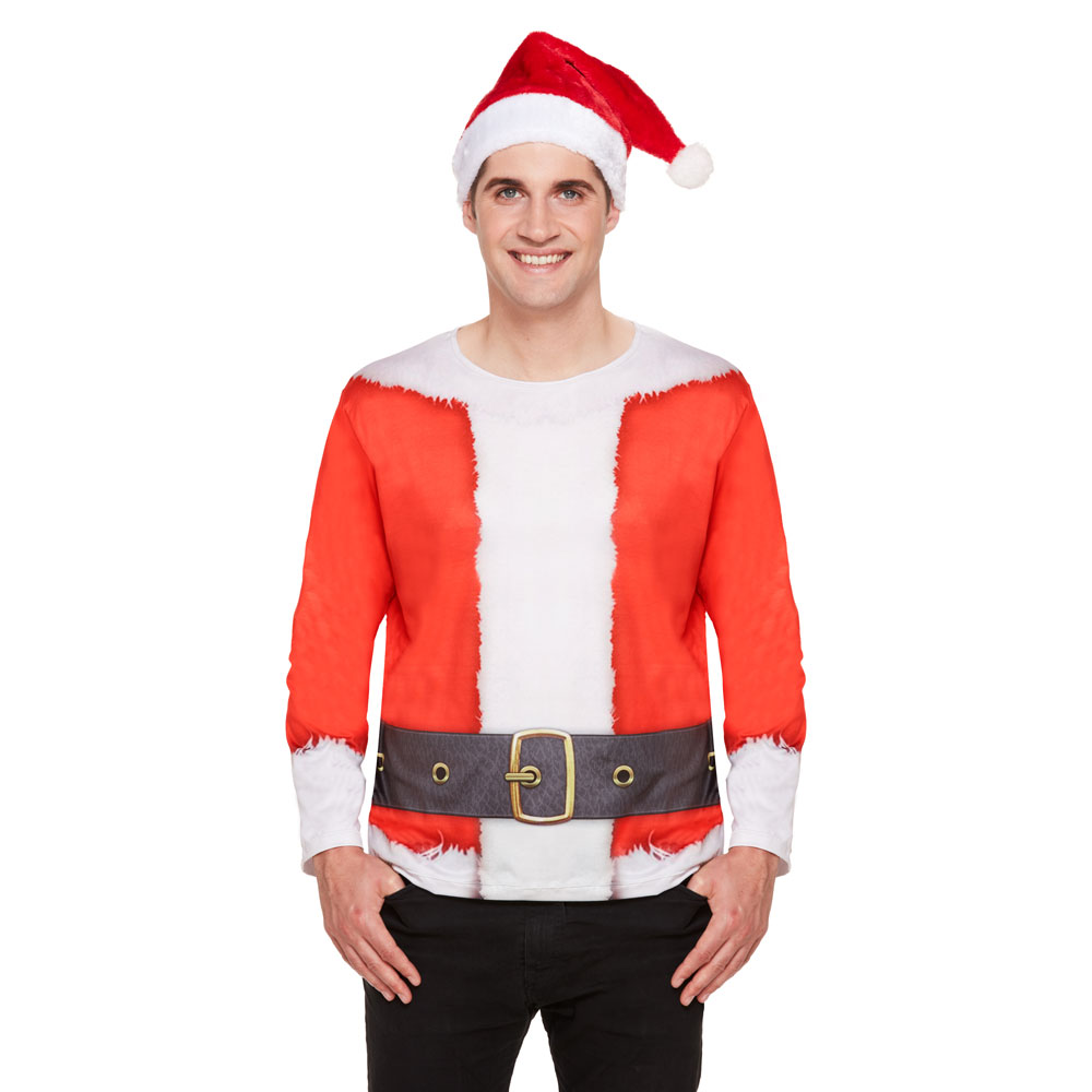 Fotorealistisk Tomtetröja består av en långärmad tröja med fotorealistiskt motiv av en röd-vit tomteklädsel med svart bälte. Tillverkad av polyester.