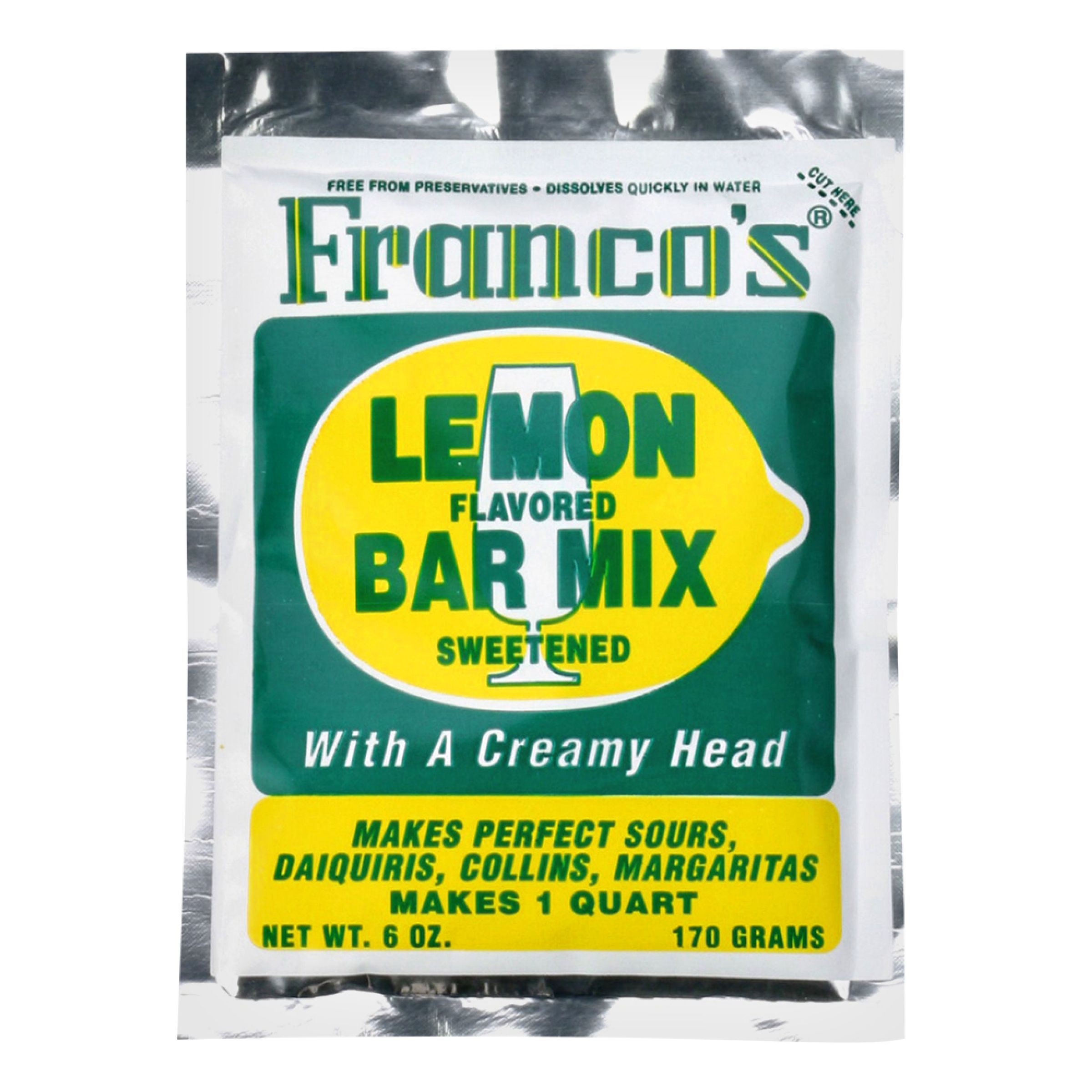 Franco's Lemon Sweet & Sour Mix är en drinkmix i pulverform som är både söt och syrlig. Säljs i påse om 170 gram eller 680 gram.