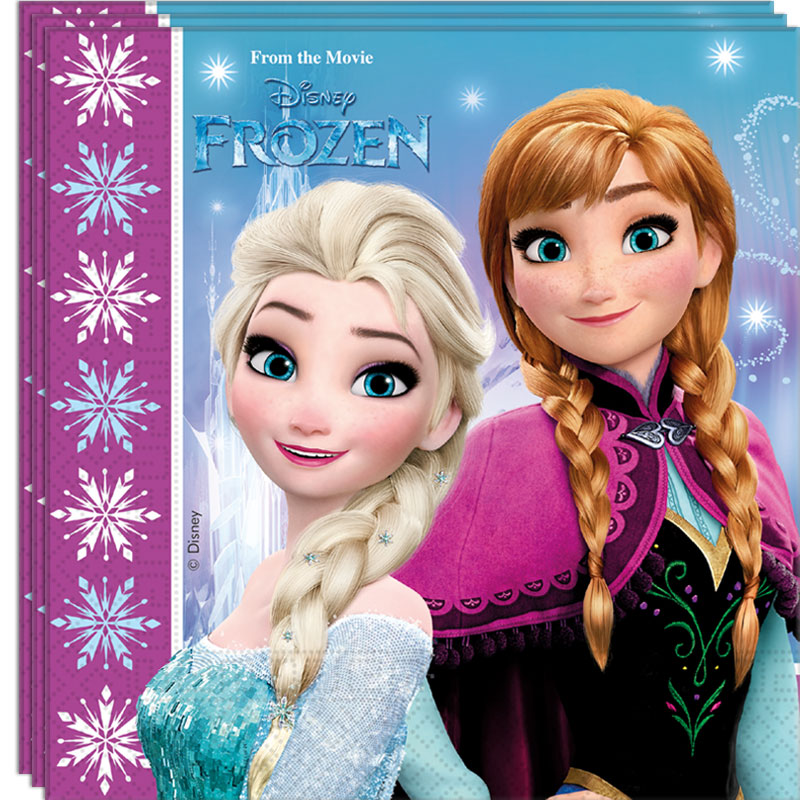 Är årets födelsedagskalas tema Frost så blir dessa Frost servetter bra att ha till hands när munnar och händer blir kladdiga, vilket de garanterat lär bli! Med dessa Frost servetter med Elsa och Anna motiv kan du enkelt fullända din Frost dukning inför nästa barn-kalas i Frost tema. Riktigt fina pappersservetter som enkelt kan matchas in på så gott som vilken Frost kalas som helst.