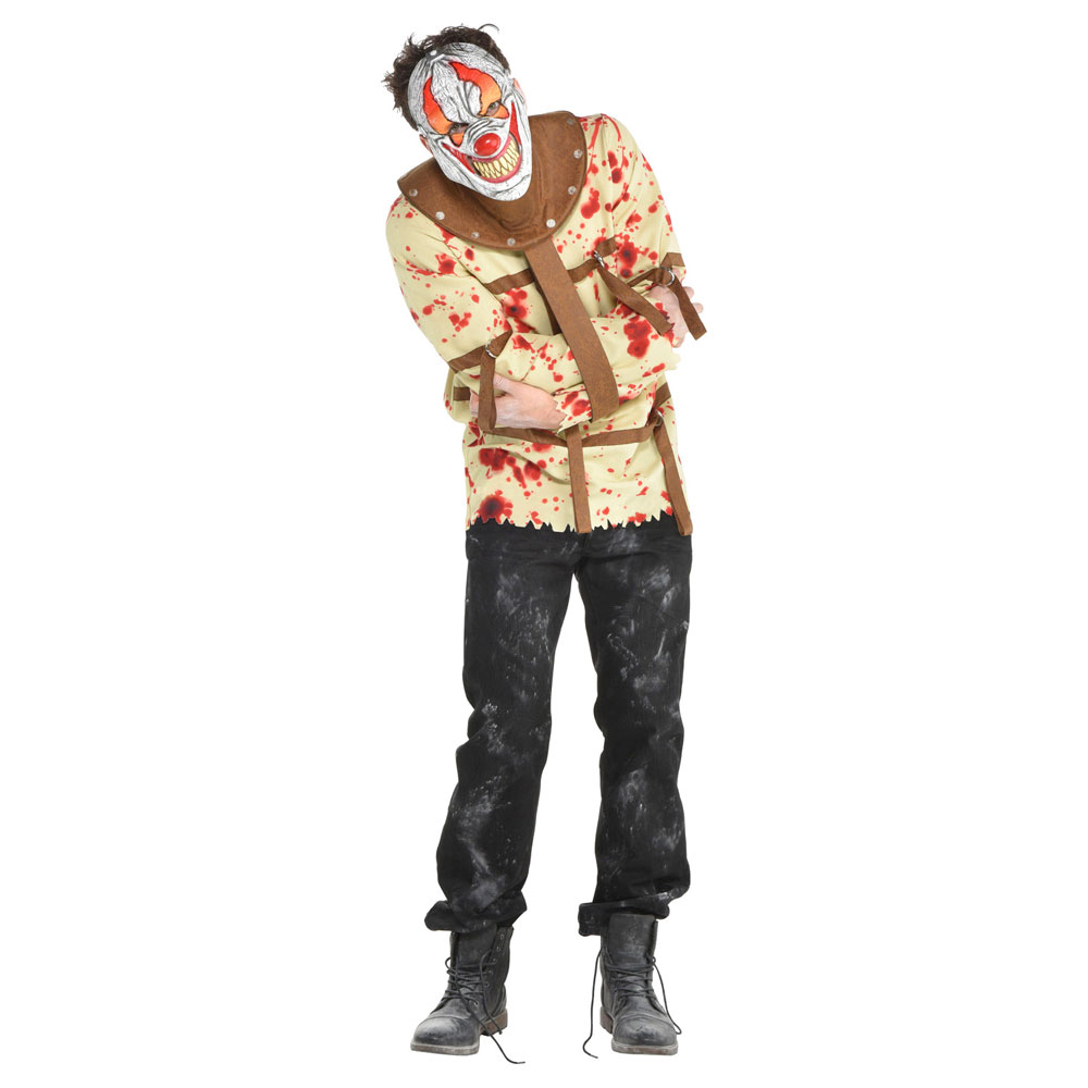 Sätt skräck i alla dina vänner med denna läskiga psycho-clown maskeraddräkt! Riktigt otäck clown utklädnad som gör det lätt som en plätt att både klä ut sig och skrämmas riktigt ordentligt. Den blodiga, tvångströja-liknande överdelen och den otäcka masken avslöjar att du är helt galen, och kanske till och med kapabel till nästan vad som helst. En skrämmande clowndräkt som helt klart gör dig till en riktigt mardrömslik halloween clown!