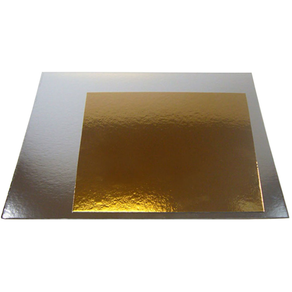 Fyrkantiga Tårtbrickor Guld och Silver 35 cm 3-pack består av tårtfat med en sida i silver och andra i guld. Tårtfaten mäter ungefär 35 centimeter i längd och bredd. Säljs i 3-pack.