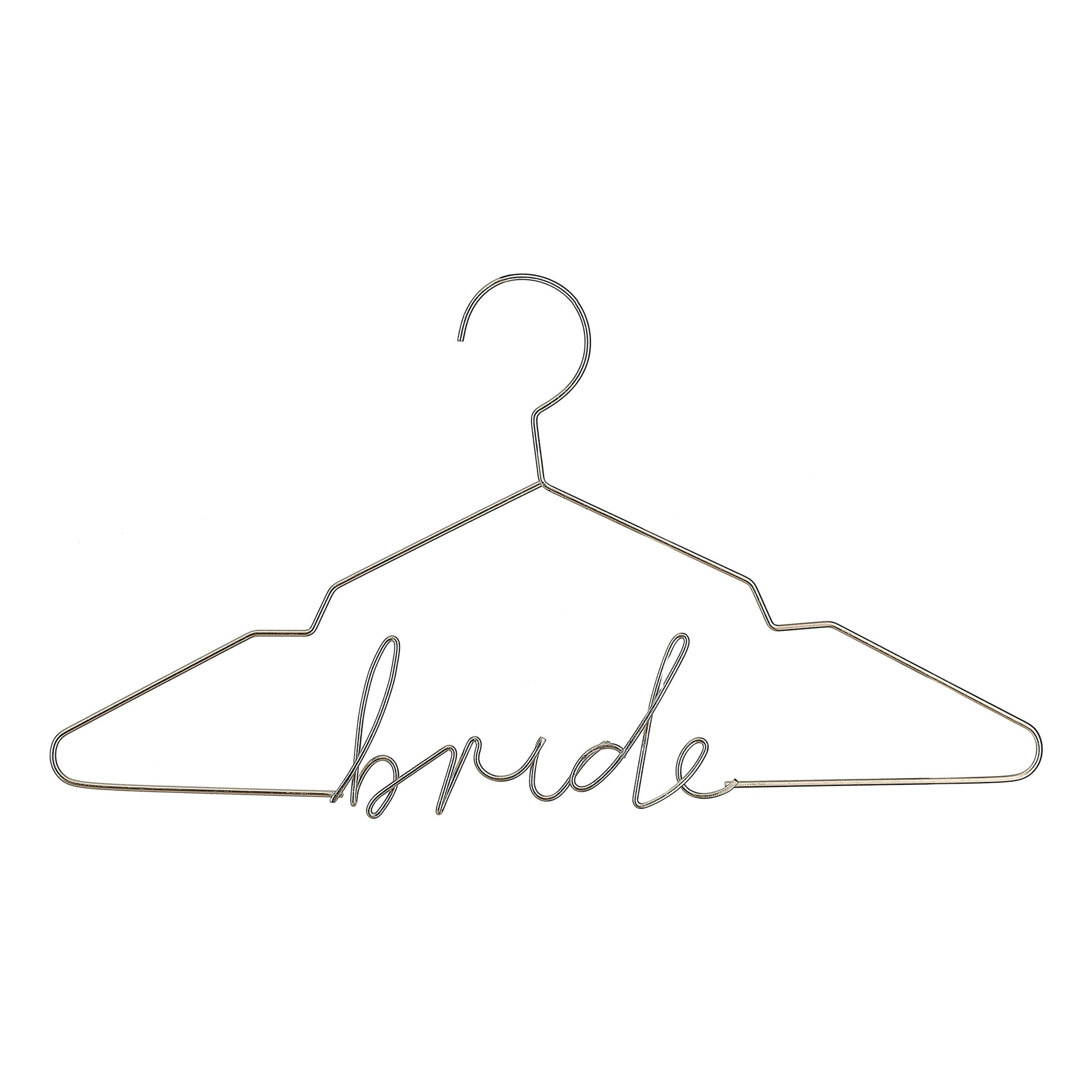 Inte ska väl bröllopsklänningen behöva hänga på någon trött plastgalge. Nej, nej, nej! Låt klänningen hänga i stil på den här tjusiga guldgalgen med texten "Bride" på.