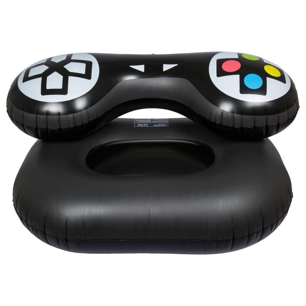 Gaming Fåtölj Uppblåsbar består av uppblåsbar stol i form av spelkontroll. Fåtöljen är gjord i svart plast, har en maxvikt på 130 kg och är ca 115 cm hög, 70 cm bred och har ett djup på 55 cm. Reparationslapp medföljer.
