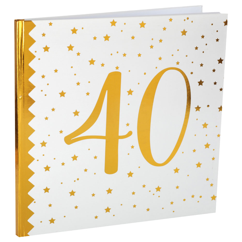 Ute efter en fin gästbok till din 40-års födelsedag? Då blir den här gästboken helt perfekt! Superfin 40-års kalas gästbok i vitt och guld som livar upp hela din fest. Lägg fram den tillsammans med fina pennor och låt gästerna gå loss i boken. Ett kul tillbehör och ett fantastiskt minne att spara efter festens slut.