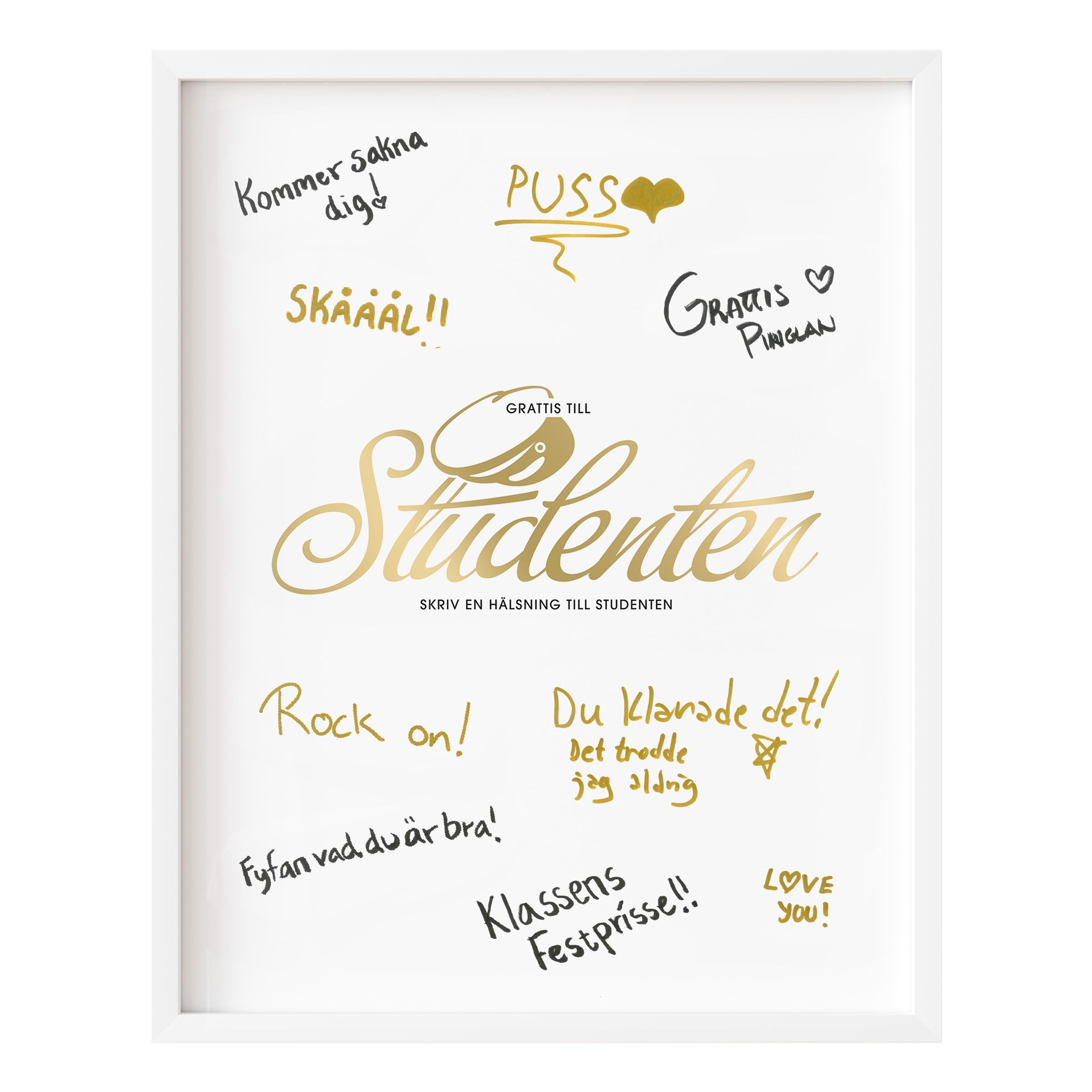 Att ta med sig ett minne som man kan komma ihåg från studenten är alltid extra värdefullt! Så vad passar inte bättre än att ge den kommande studenten en massa fina hälsningar inför framtiden i form av en tavla? Häng upp tavlan på studentmottagningen och skriv dina bästa hälsningar och studenten kommer att få minnen för livet!