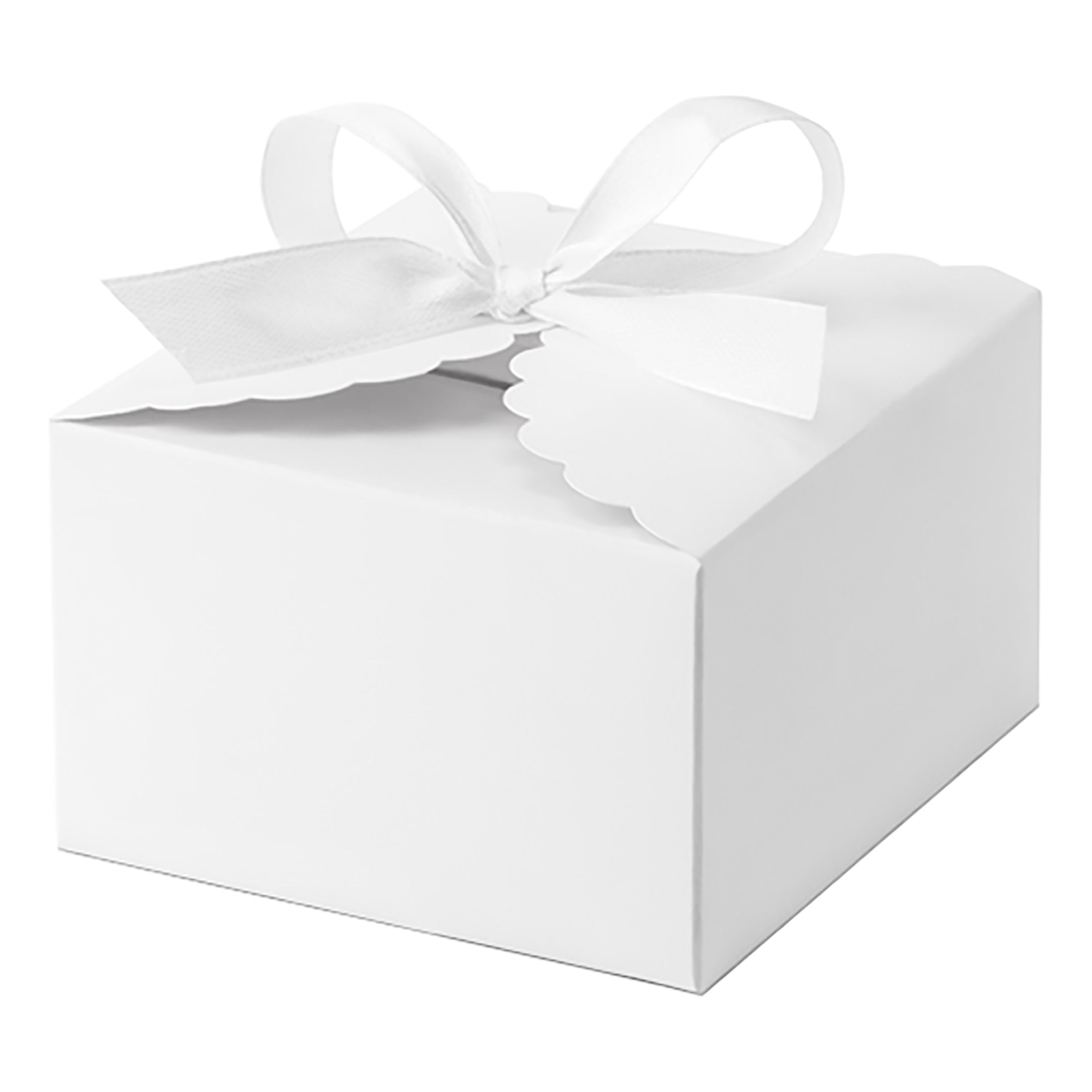 Gåvoaskar Vita inkluderar tio stycken vita presentaskar av papper som dessutom kommer med en liten vit rosett. Askarna passar lika bra till bröllopet som till en baby shower. Levereras omonterade.