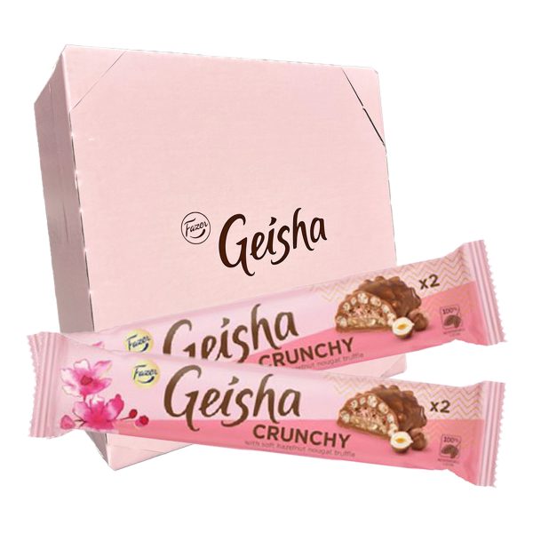 Vad sägs om hasselnötsnougat och mjölkchoklad som omger frasiga rispuffar? Öppna en Geisha Crunchy för att hitta dubbla bitar för dubbel njutning!