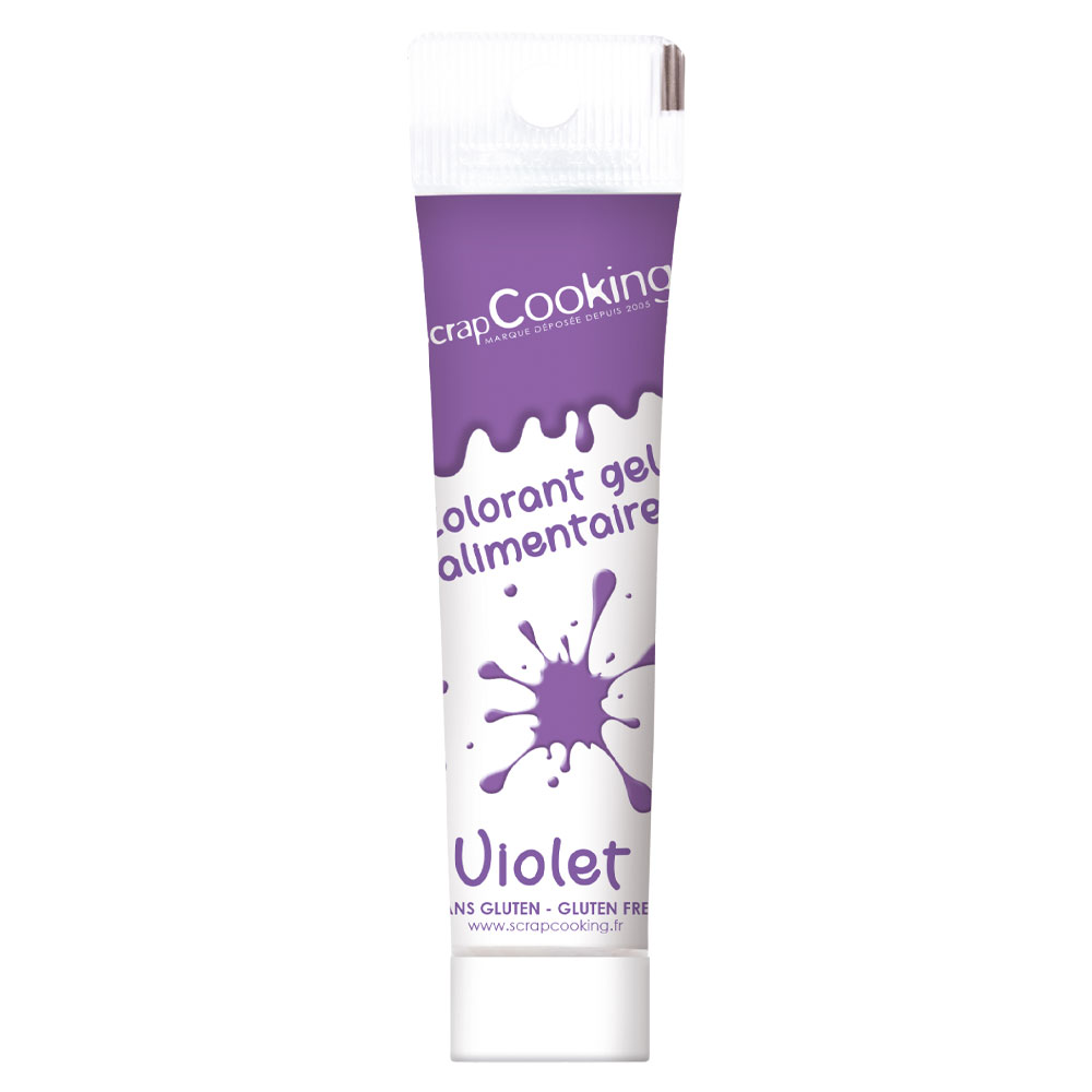 Gelefärg Lila ScrapCooking omfattar ätbar gelfärg på tub till färgning av sockerpasta, tårtor och bakelser. Färgar utan att påverka konsistensen, maxdos 2 gram per kilo. Innehåller 20 gram gelfärg.