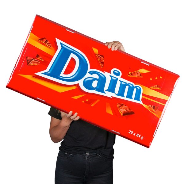 Gigantisk Choklad Daim är samma gigantiska choklad som du hittar på nöjesparkernas chokladhjul, med 20 (!) stycken daim choklad i en snygg presentförpackning. Med denna gigantiska daim choklad kan du lura hela världen att just DU vunnit (fast du egentligen köpte den). En exemplarisk gåva att ge bort till födelsedagsbarnet, eller varför inte till dig själv?