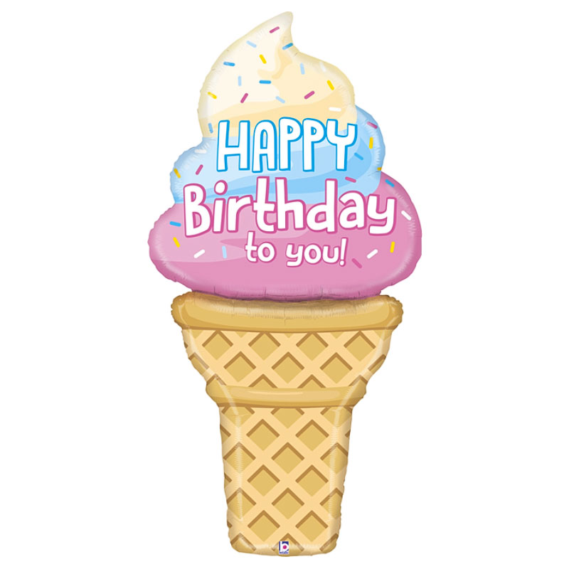 Alla som älskar glass borde ha en sån här gigantisk happy birthday jätte-ballong! Denna folieballong kommer bli en hit på ditt sommar-kalas. En stor ballong som denna kanske till och med är större än dig själv med sina 152 centimeter, så se upp så din heliumballong inte flyger iväg med dig!