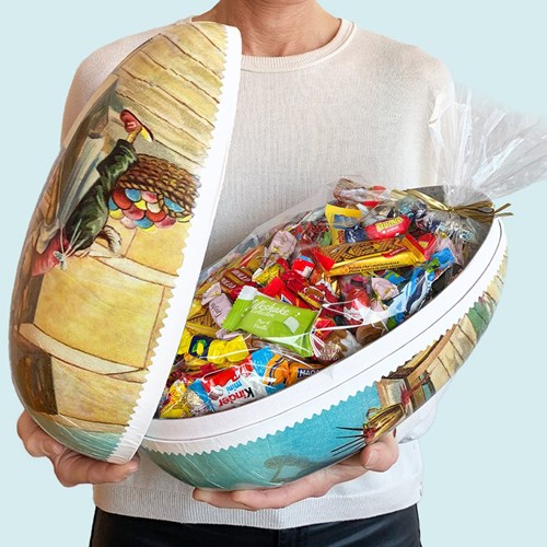 Ett megastort påskägg fyllt med hela 3 kg lyxigt godis! Perfekt godisägg till stora familjen eller ett företag.