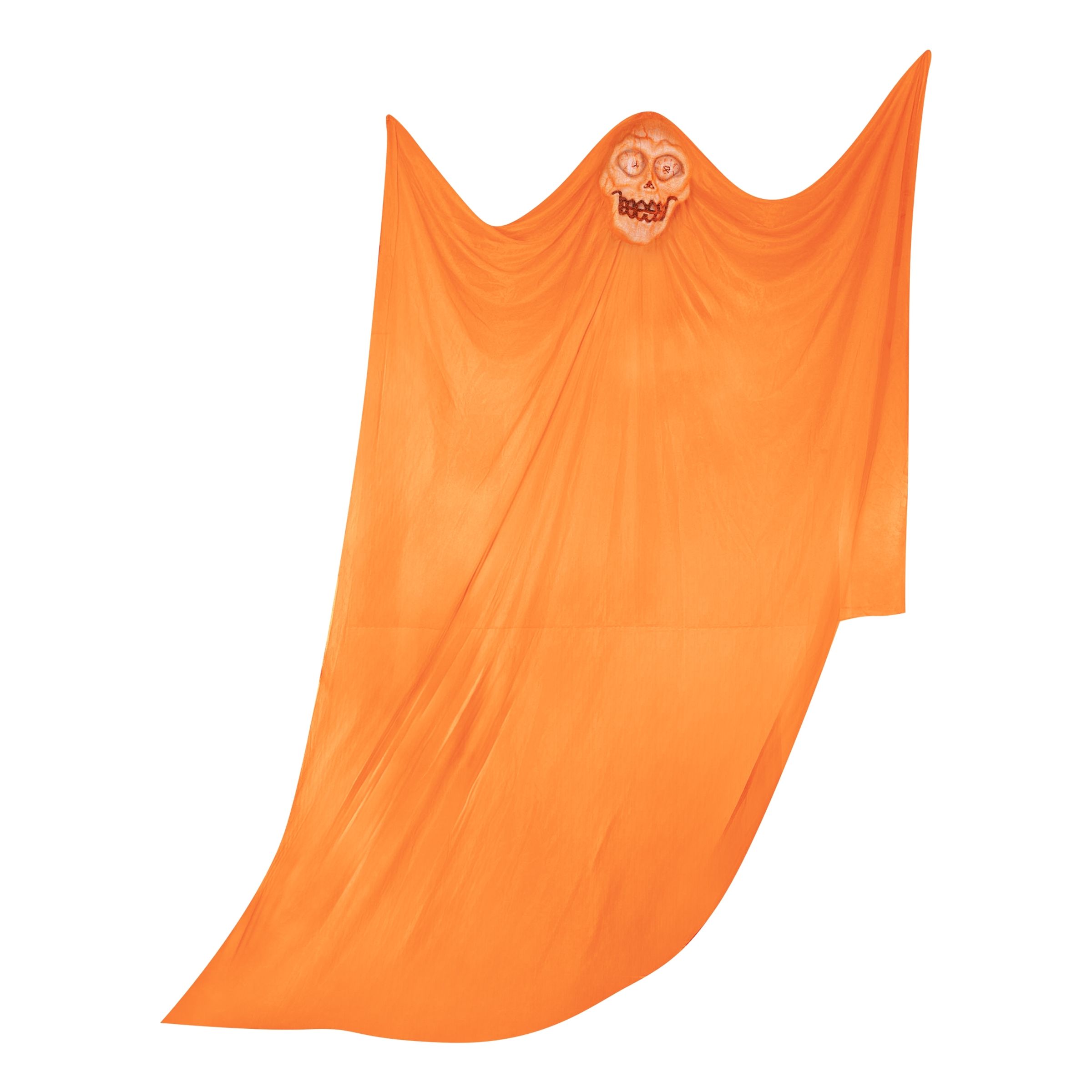 Gigantiskt Spöke Hängande Prop är en kuslig halloweenprop som består av ett läskigt ansikte med ett stort orange skynke som täcker alltsammans. Dekorationen hängs enkelt upp med hjälp av snören för att bli en imponerande utomhusdekoration till Halloween.
