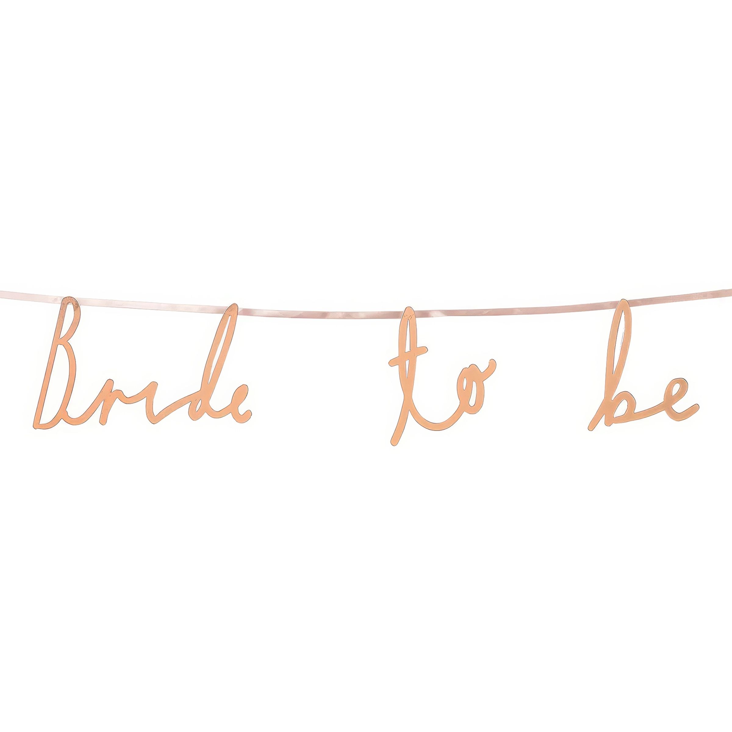 Girlang Bride To Be Guld Metallic består av en girlang i papp med roséguldfärgad text där det står "Bride to be". Girlangen är 1,2 meter lång och den är enkel att hänga upp med till exempel lite tejp.