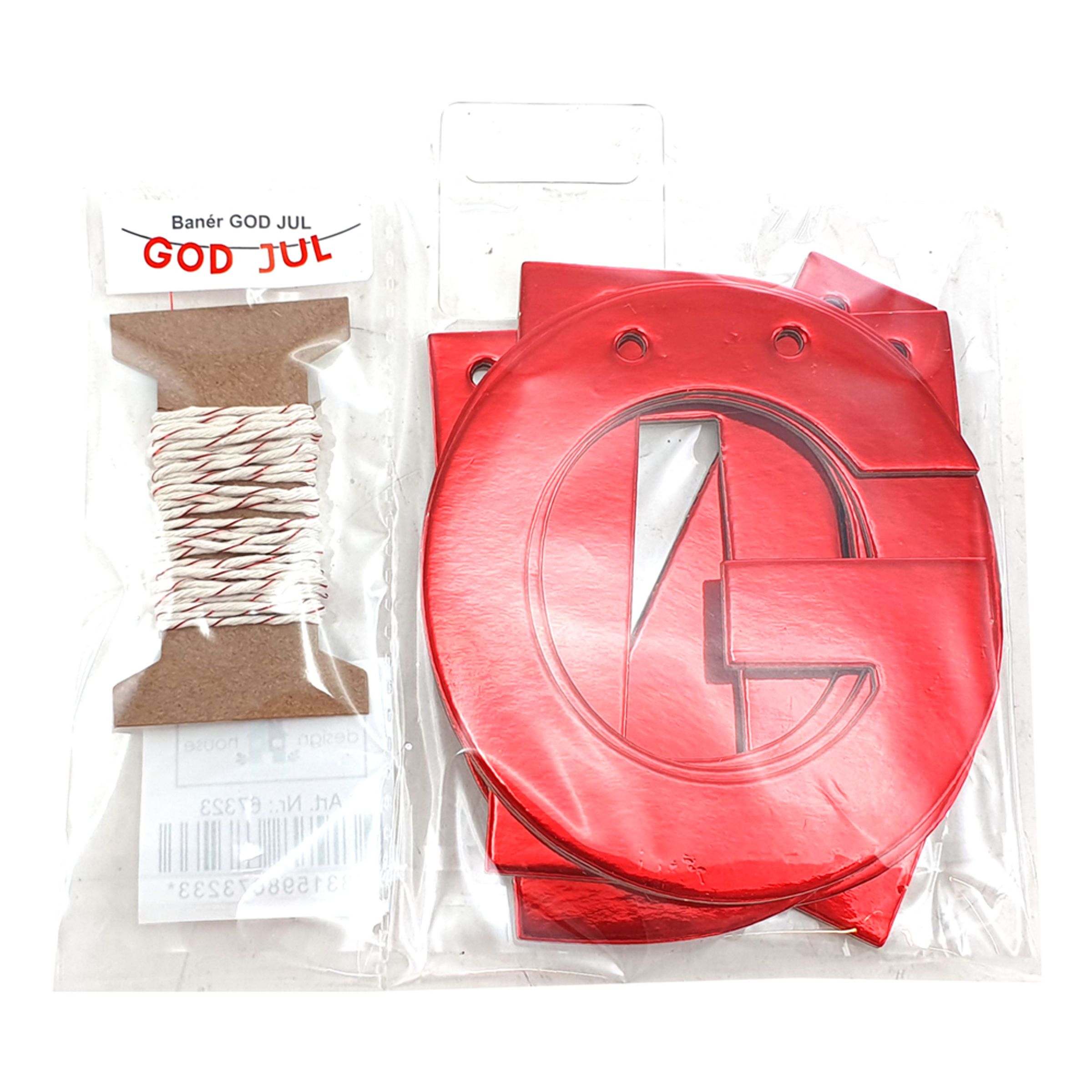 Girlang God Jul Röd är en såkallad "DIY-girlang" vilket innebär att du meckar ihop den själv. Varje bokstav mäter cirka 8 cm bred och totalt medföljer sex stycken bokstäver som tillsammans stavar: "God Jul". Girlangen inkluderar också ett tvinnat snöre du trär igenom bokstäverna. Det totala måttet för girlangen är cirka 80-90 cm.