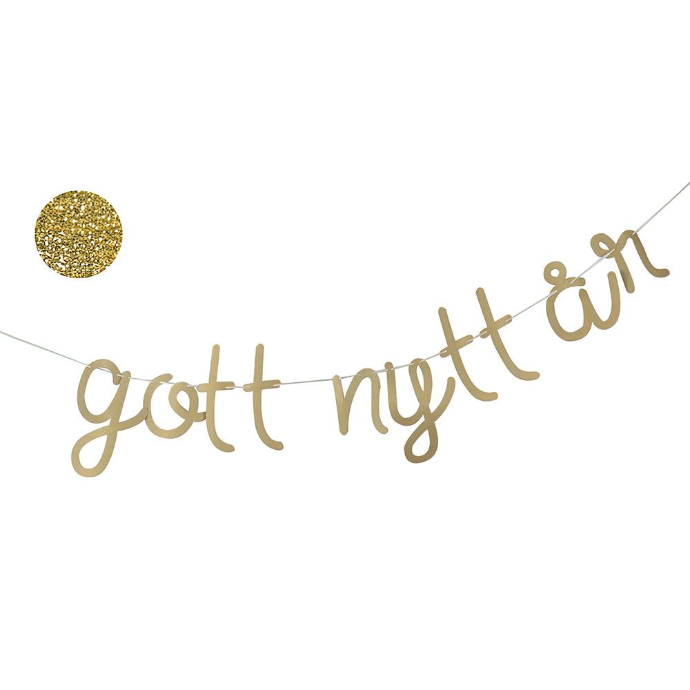 Girlang Gott Nytt År Guld omfattar en bokstavsgirlang i papp med texten "Gott Nytt År" i intensivt glittrande mörk guldfärg. Girlangen är ca 4 meter lång.