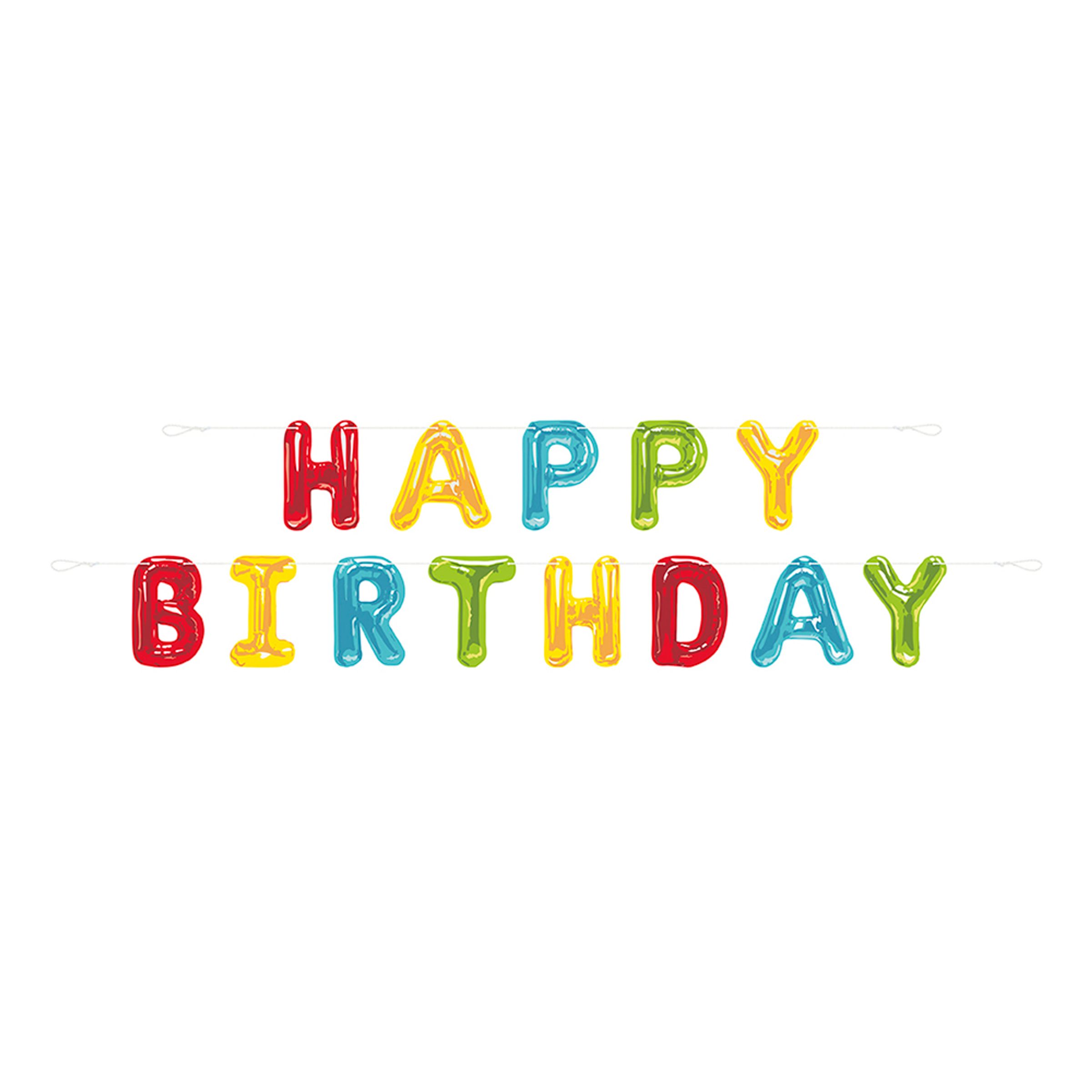 Girlang Happy Birthday Ballong är producerad i papp men ser ut som uppblåsta heliumballonger. Den kommer i två delar "HAPPY" och "BIRTHDAY". Fästs enklelt med tejp eller liknande. Passar alldeles utmärkt på födelsedagsfesten.