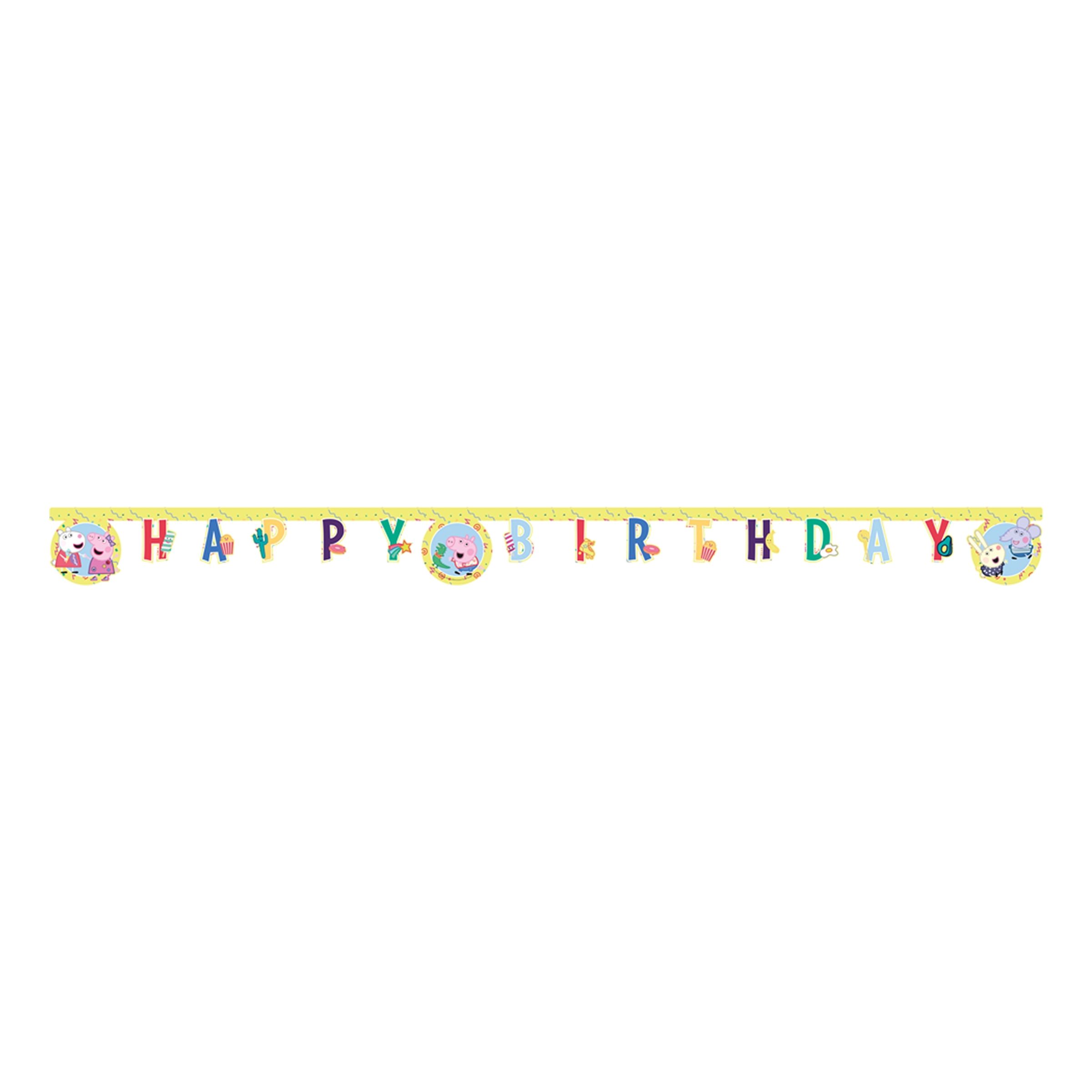 Girlang Happy Birthday Greta Gris är en bokstavsgirlang med bokstäver i olika färger som bildar orden "Happy birthday". Före, mellan och efter orden finns märken med motiv från barnprogrammet Greta Gris. Girlangen är ca 230 cm lång. Den är tillverkad i papp. Du hänger enkelt upp girlangen mellan två krokar eller med hjälp av lite tejp.
