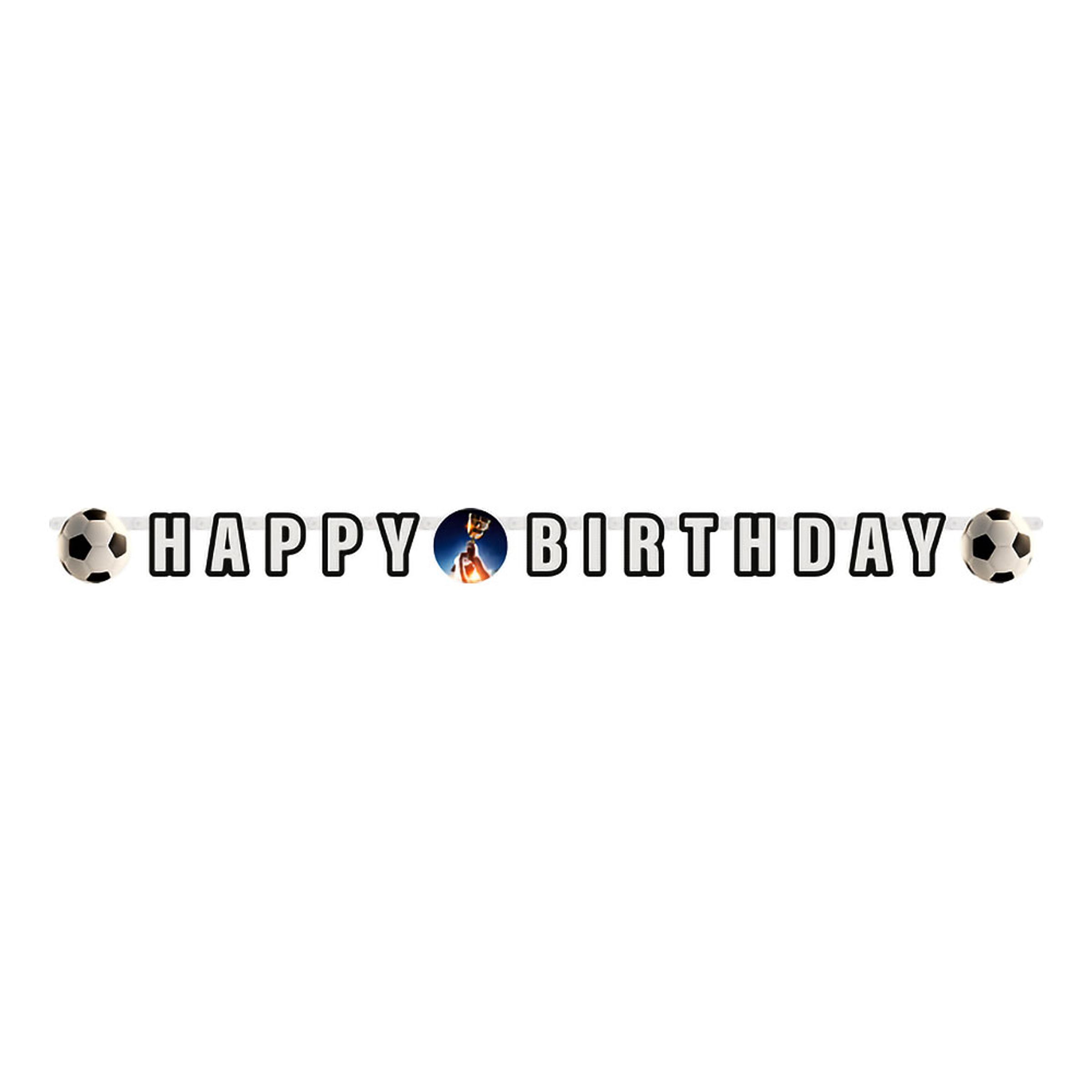 Girlang Happy Birthday Kick It är en girlang av papper som kommer med fotbollsmotiv och texten "Happy Birthday". Komplettera gärna med annan dukning och dekoration ur samma kollektion för ett fullbordat tema till fotbollskalaset.