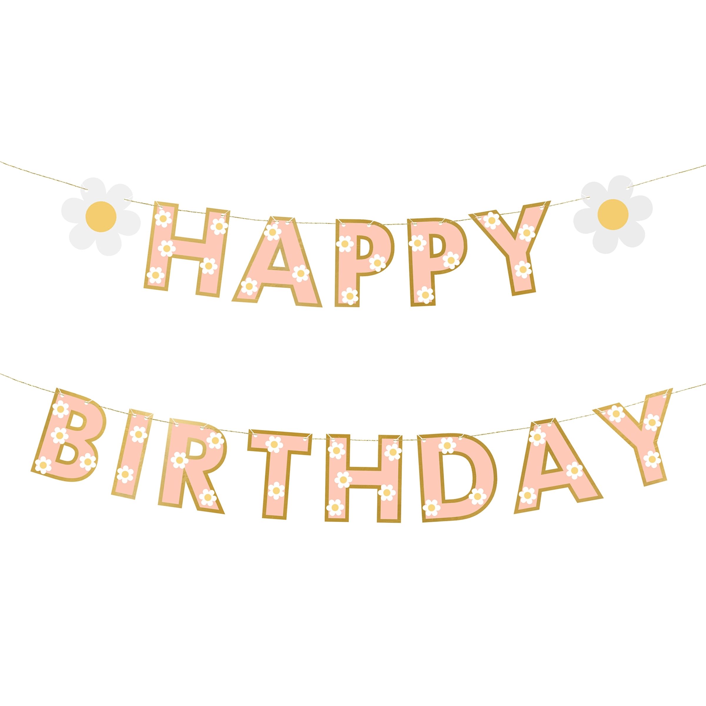 Ge liv i kalaset med blommor och födelsedagshälsningar! Häng upp den här vackra girlangen över kalasbordet för att sätta stämningen på födelsedagskalaset med mjuka färger och blomster!